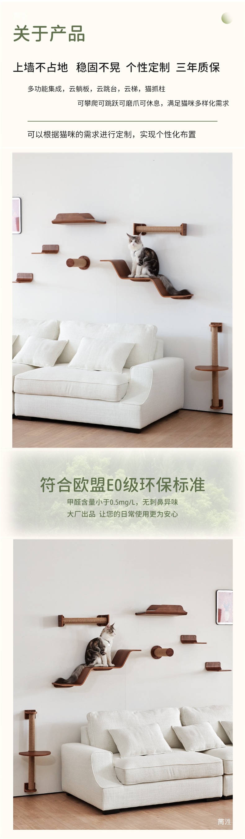 고양이 클라이밍 프레임, 블랙 월넛 고양이 둥지, 점프 플랫폼, 벽에 붙여서 공간을 차지하지 않음, 벽에 붙여진 클라이밍 프레임, 고양이 벽, 고양이 스크래치 보드 일체형스토어 가기
