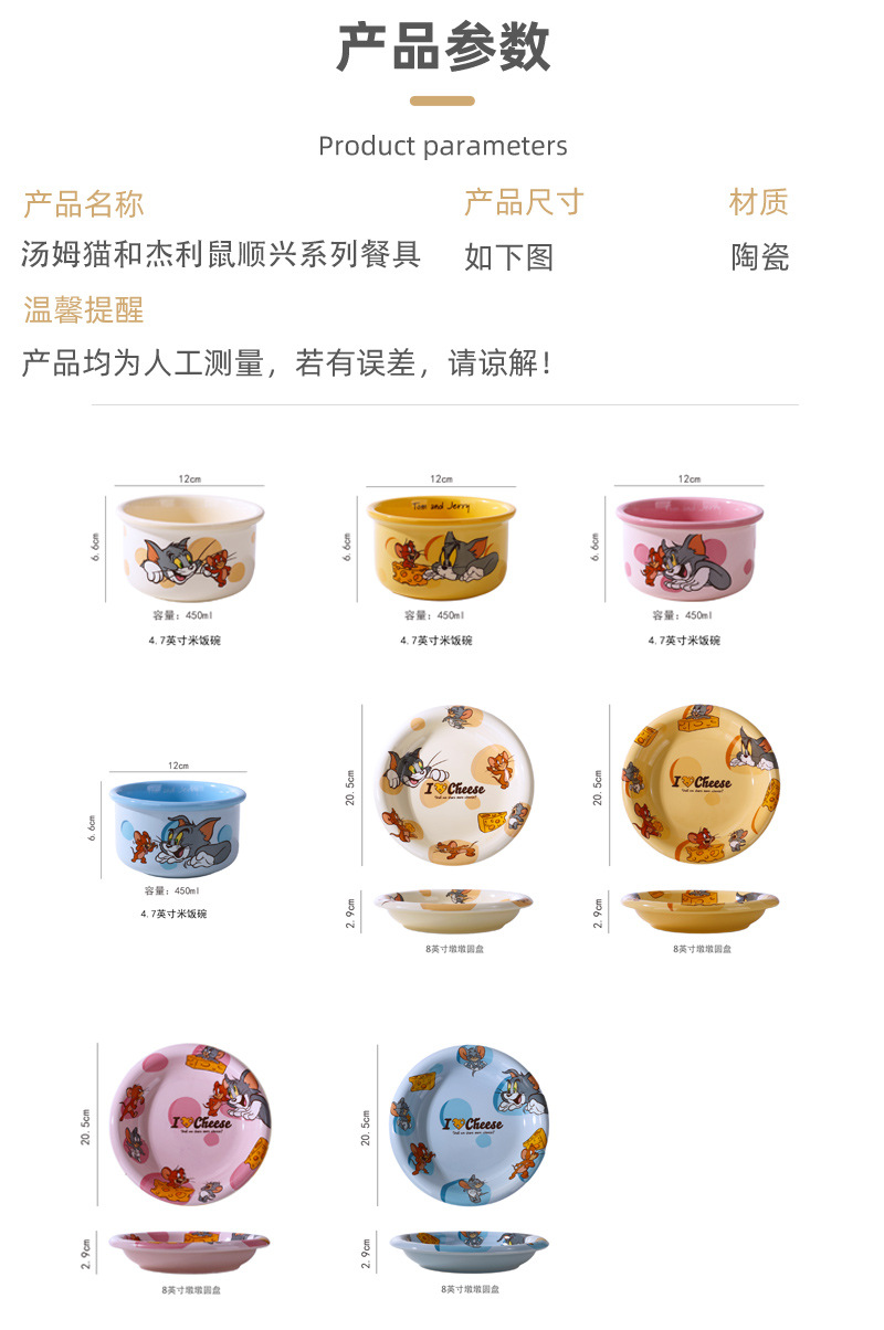 톰과 제리 세라믹 Shunxing 4.7 인치 밥 어린이 그릇 인터넷 연예인 가정용 마시는 그릇 만화 그릇 귀여운 그릇스토어 가기