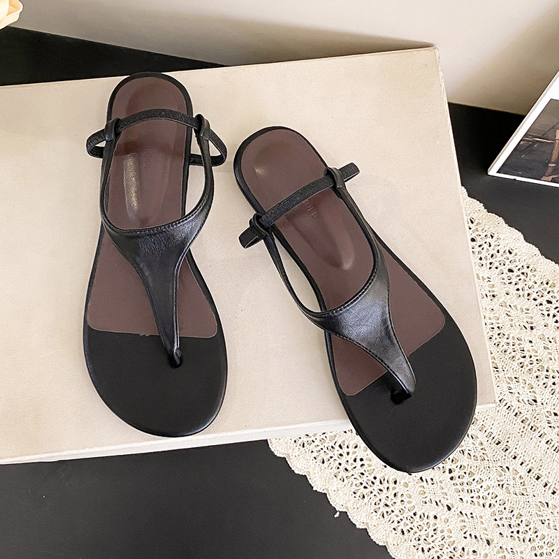 2025년 여름 신상 라운드 토 플립플롭 플랫 바닥 패션 벨트 버클 휴가 로마 비치 여성 샌들