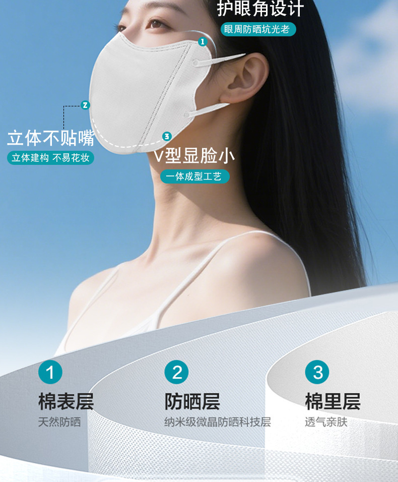 여성용 6D 입체 일회용 자외선 차단 마스크 10개 독립 팩 새로운 눈 보호 및 얼굴 노출 작은 일일 일회용 자외선 차단 마스크