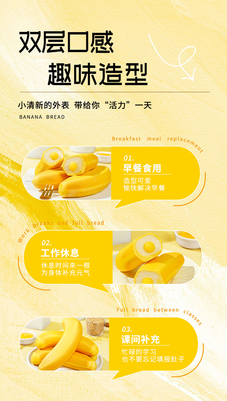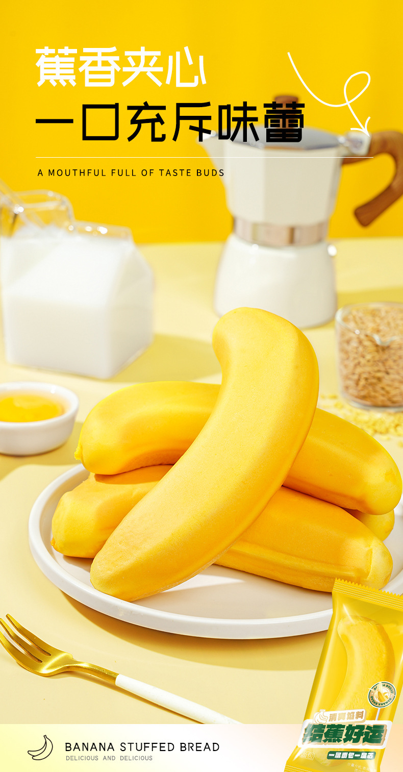 바나나빵 껍질을 벗긴 어린이 영양 샌드위치빵 인터넷 연예인 손으로 찢은 캐주얼 토스트빵 아침식사 대용 풀박스