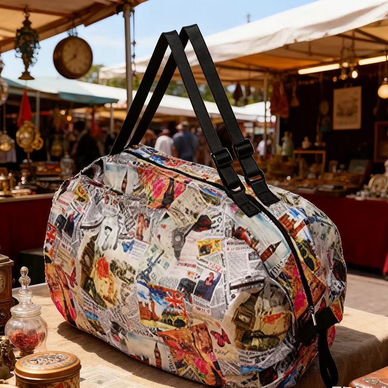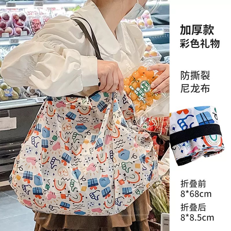 인쇄 패턴이 있는 핫 판매 나일론 입체 일본 여행 접이식 보관 가방 휴대용 여행 식료품 쇼핑백스토어 가기