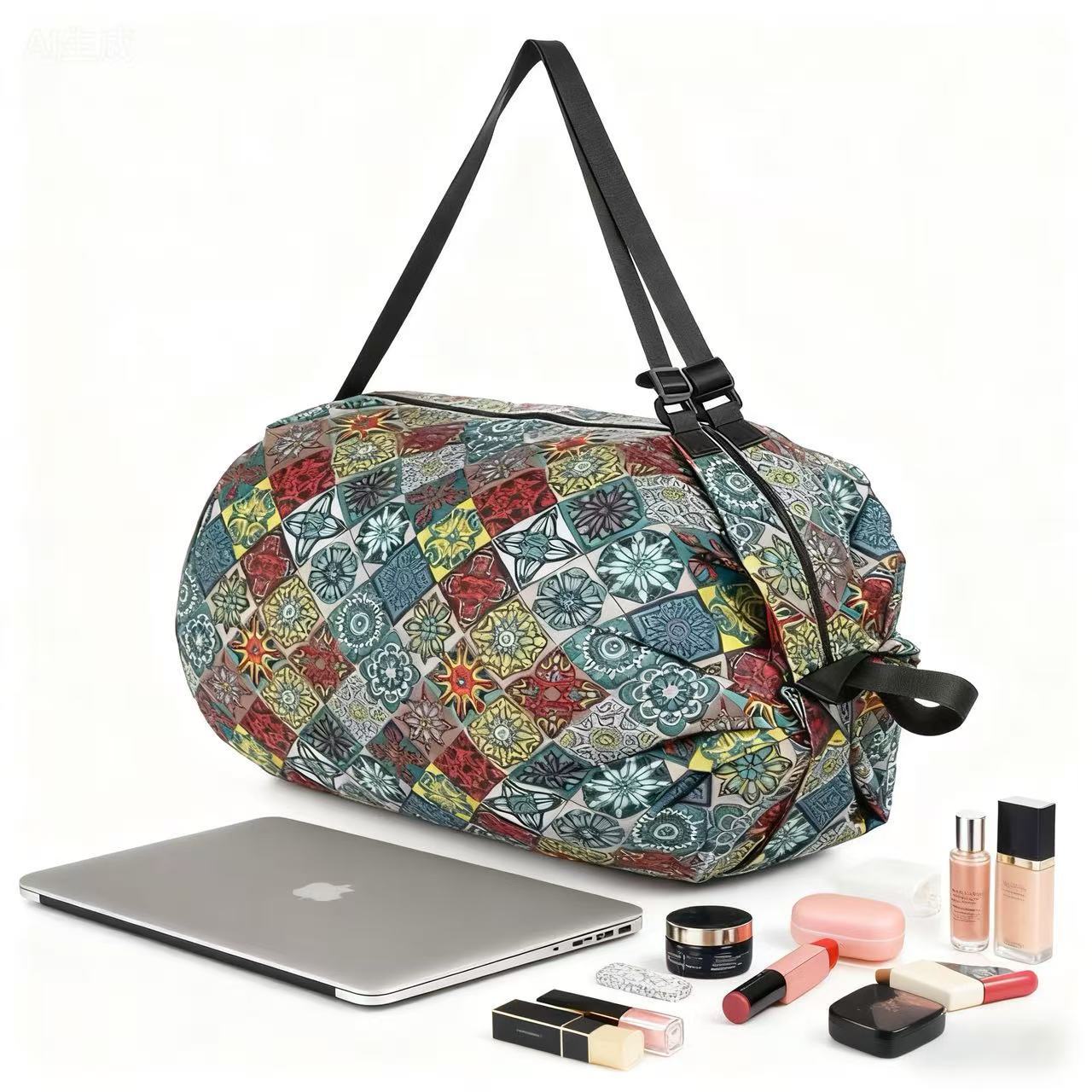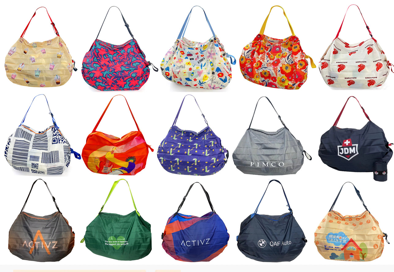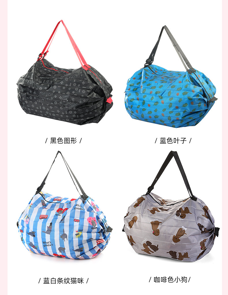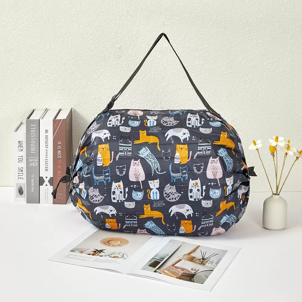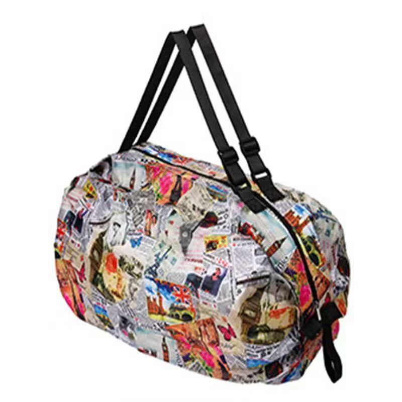 인쇄 패턴이 있는 핫 판매 나일론 입체 일본 여행 접이식 보관 가방 휴대용 여행 식료품 쇼핑백