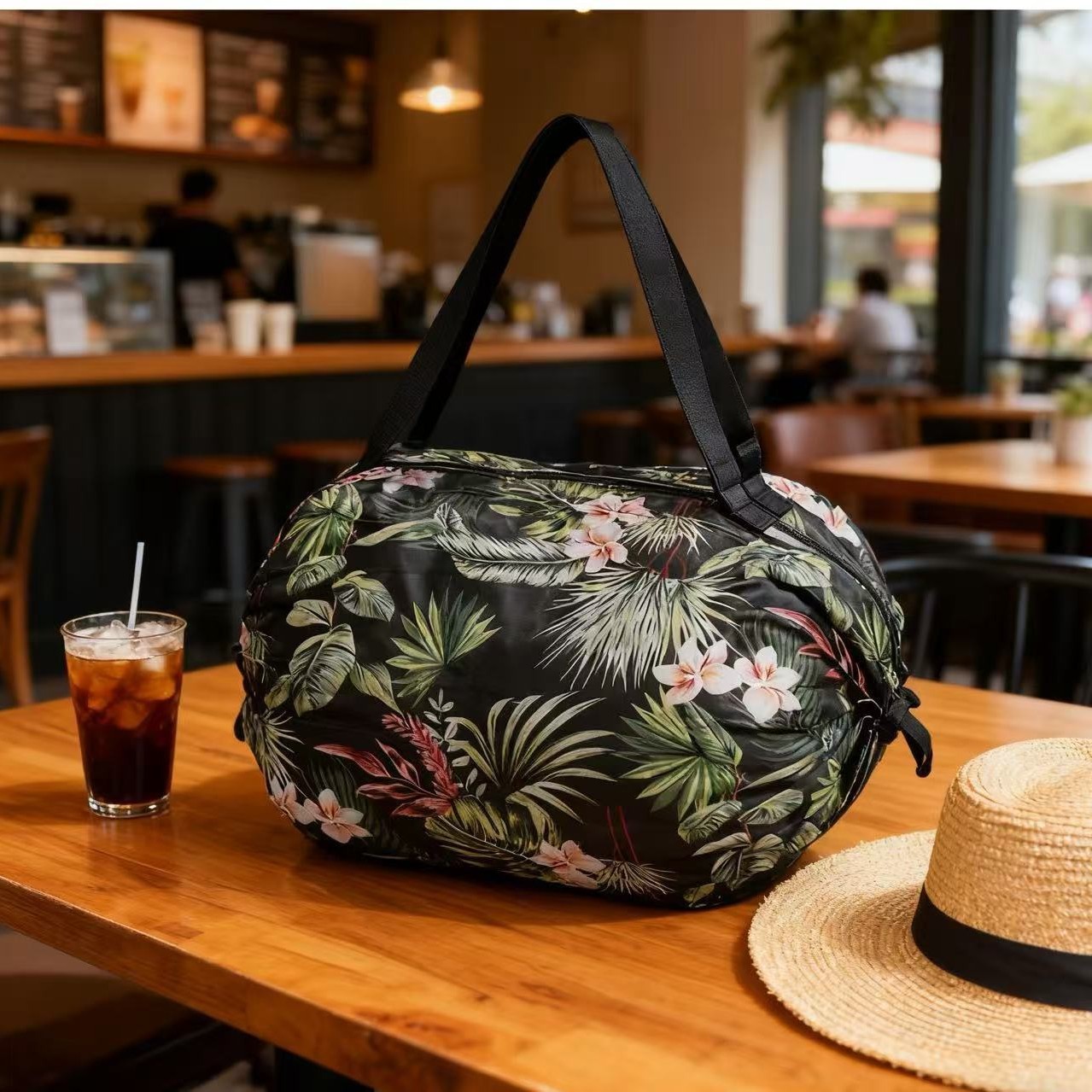 • 열대 컬러 나뭇잎 접이식 아코디언 백 50*35CM