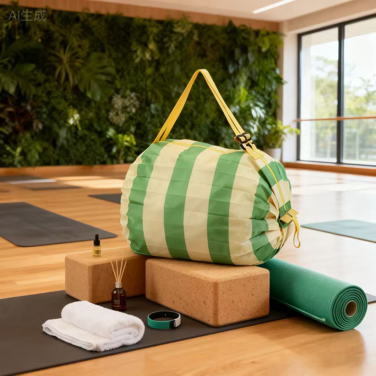 • 황록색 스트라이프 접이식 아코디언 백 50*35CM