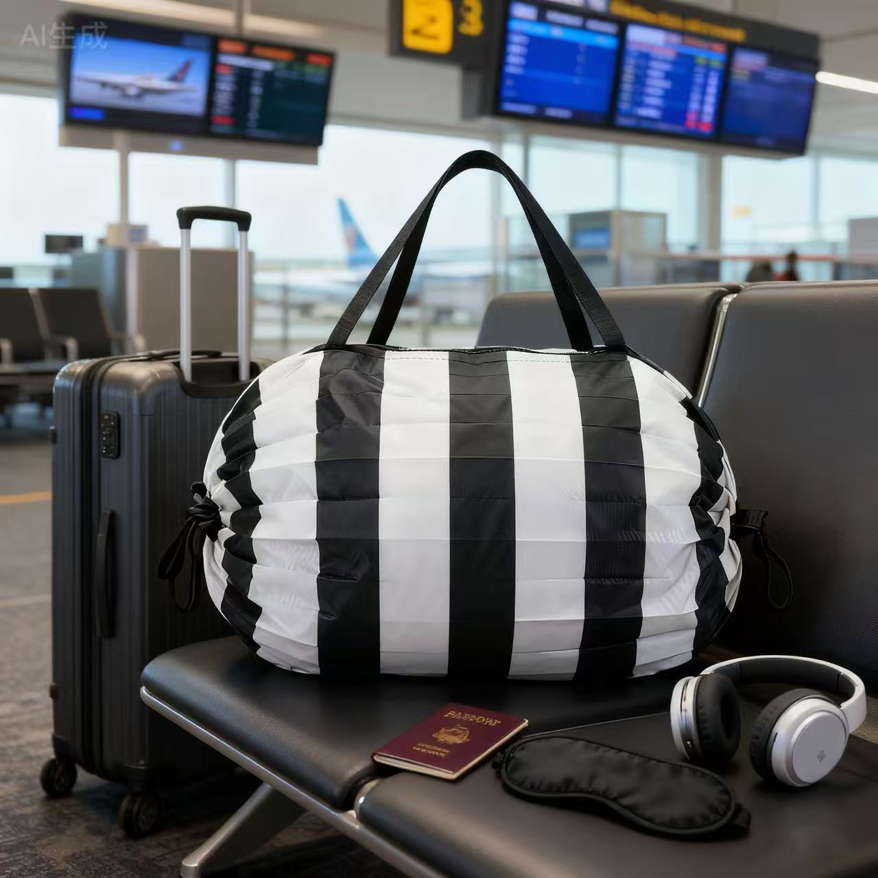 • 흑백 스트라이프 접이식 아코디언 백 50*35CM
