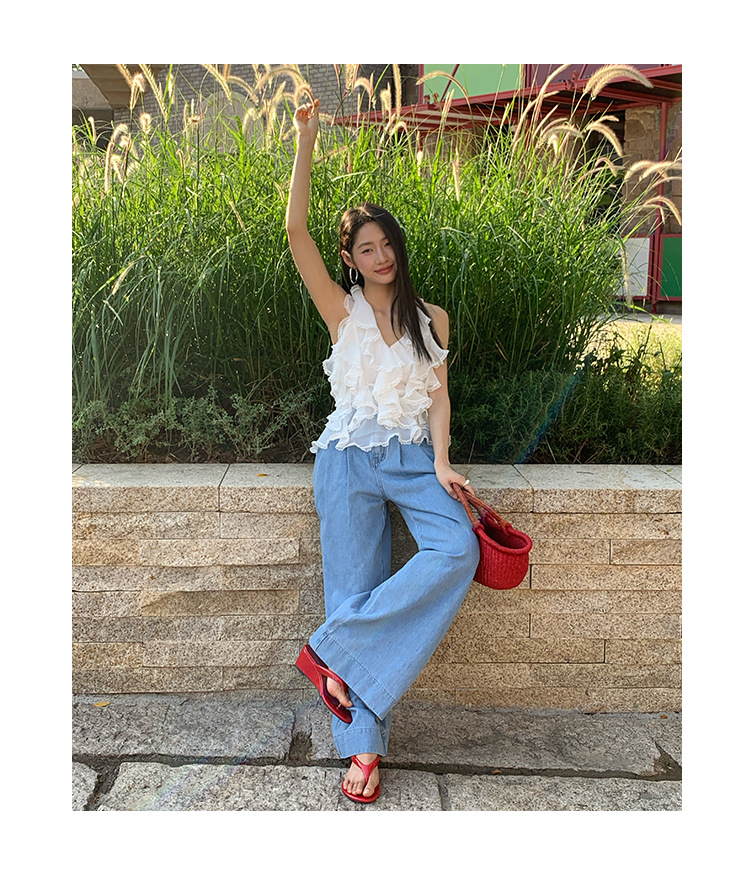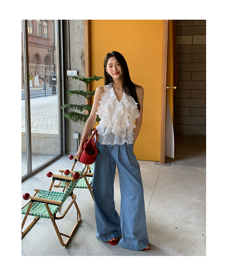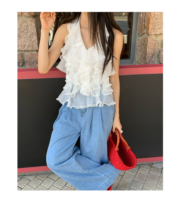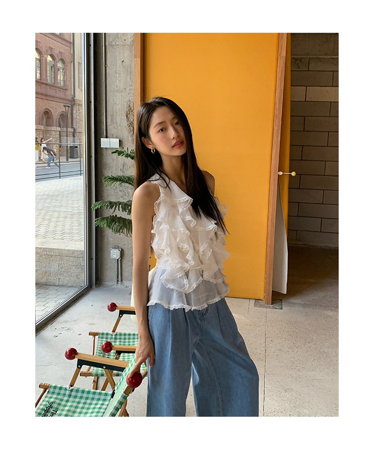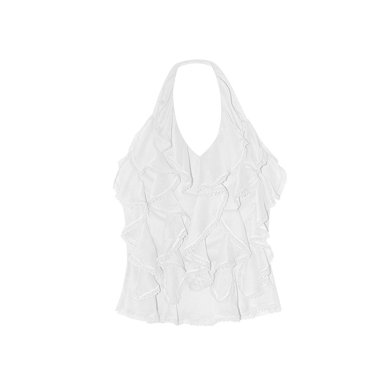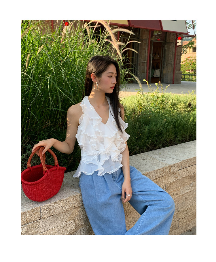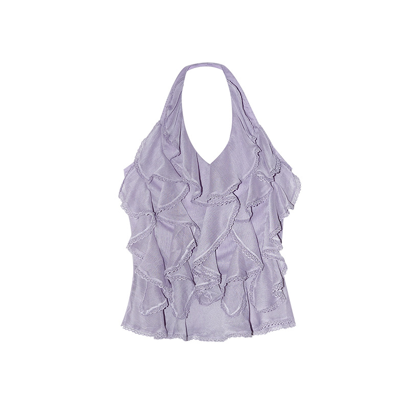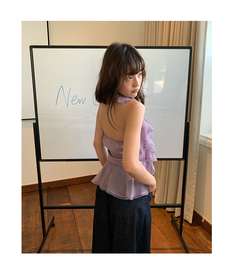 Quanlimei NEWOPEN 25 Xia Yi Ke Da 세련된 달콤하고 매운 스타일 등이없는 섹시한 홀터넥 넥 쉬폰 셔츠 S5679스토어 가기