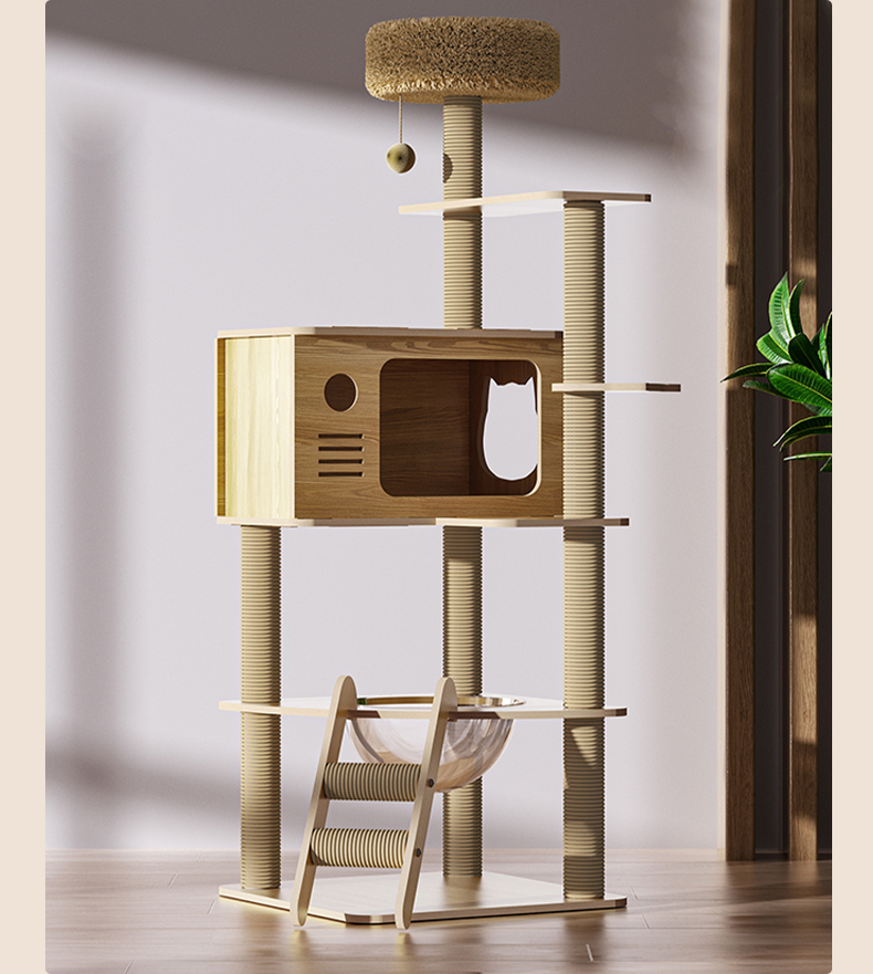 고양이 클라이밍 프레임, 고양이 둥지, 고양이 트리, 일체형 고양이 선반, 고양이 스크래치 트리, 비단단한 나무 공간 캡슐 클라이밍 컬럼, 공간을 차지하지 않는 고양이 장난감스토어 가기