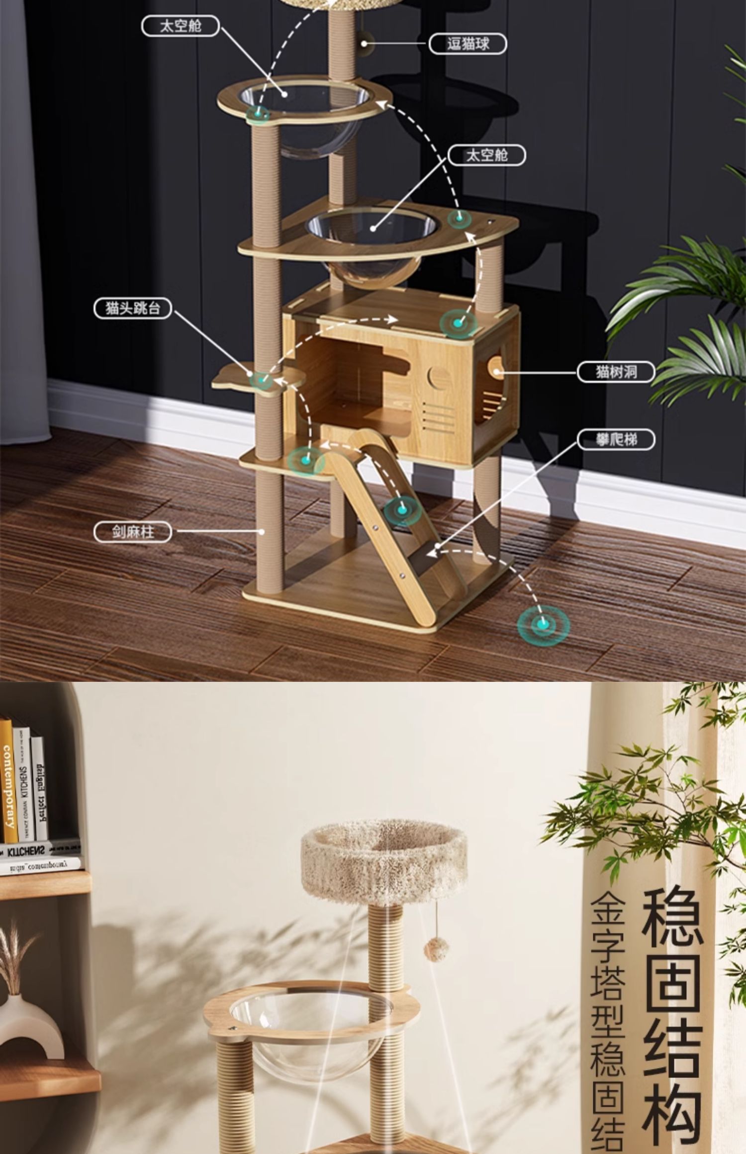 고양이 클라이밍 프레임, 고양이 둥지, 고양이 트리, 일체형 고양이 선반, 고양이 스크래치 트리, 비단단한 나무 공간 캡슐 클라이밍 컬럼, 공간을 차지하지 않는 고양이 장난감