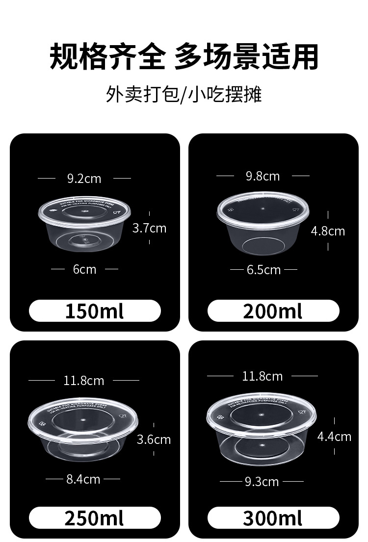 200/280/300ml 일회용 포장 상자 도시락 상자 작은 야채 과일 얼음 가루 그릇 수프 그릇 투명 검정 도시락 상자스토어 가기