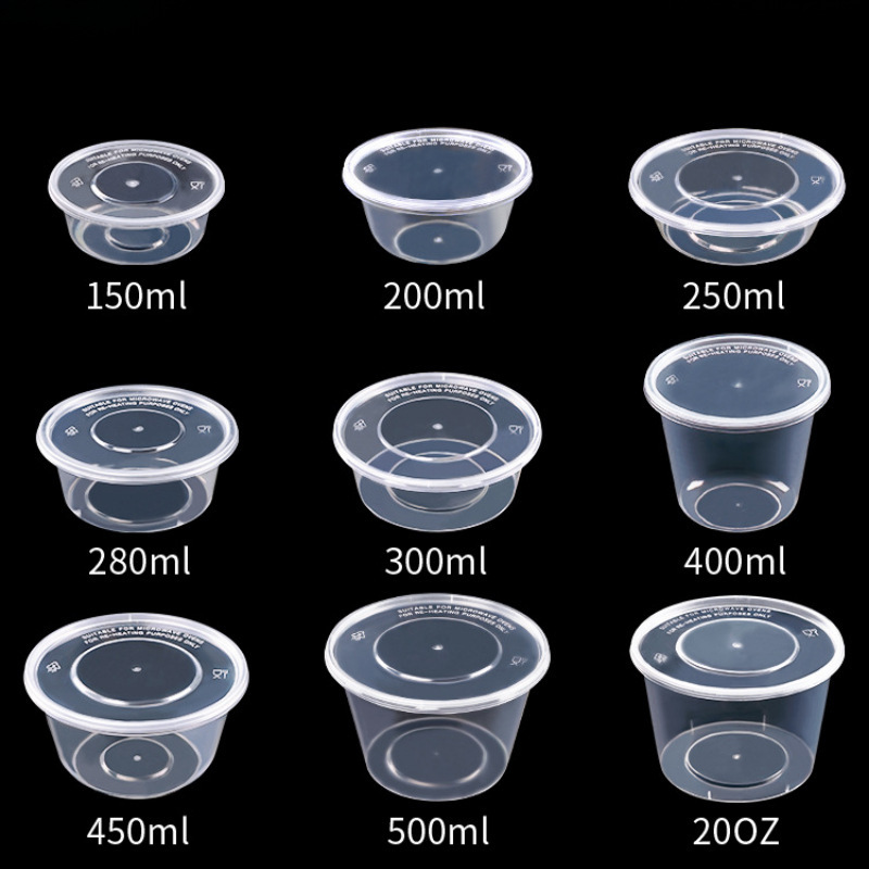 200/280/300ml 일회용 포장 상자 도시락 상자 작은 야채 과일 얼음 가루 그릇 수프 그릇 투명 검정 도시락 상자