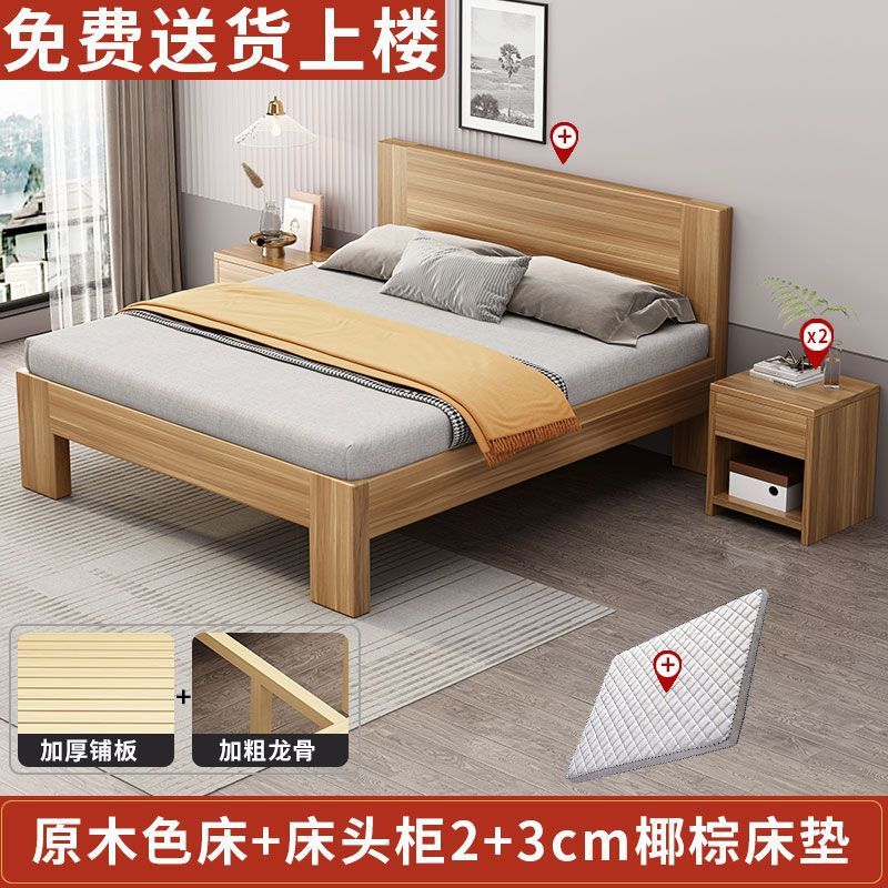 단단한 나무 침대 제조 업체 1.5m 마스터 침실 더블 침대 임대 방 나무 침대 1.2m 싱글 침대 간단한 플레이트 침대 도매스토어 가기