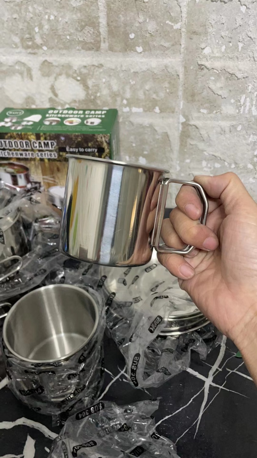 Q6J304 스테인레스 스틸 캠핑 야외 식기 접이식 세트 캠핑 장비 휴대용 조리기구 두꺼운 냄비 접이식