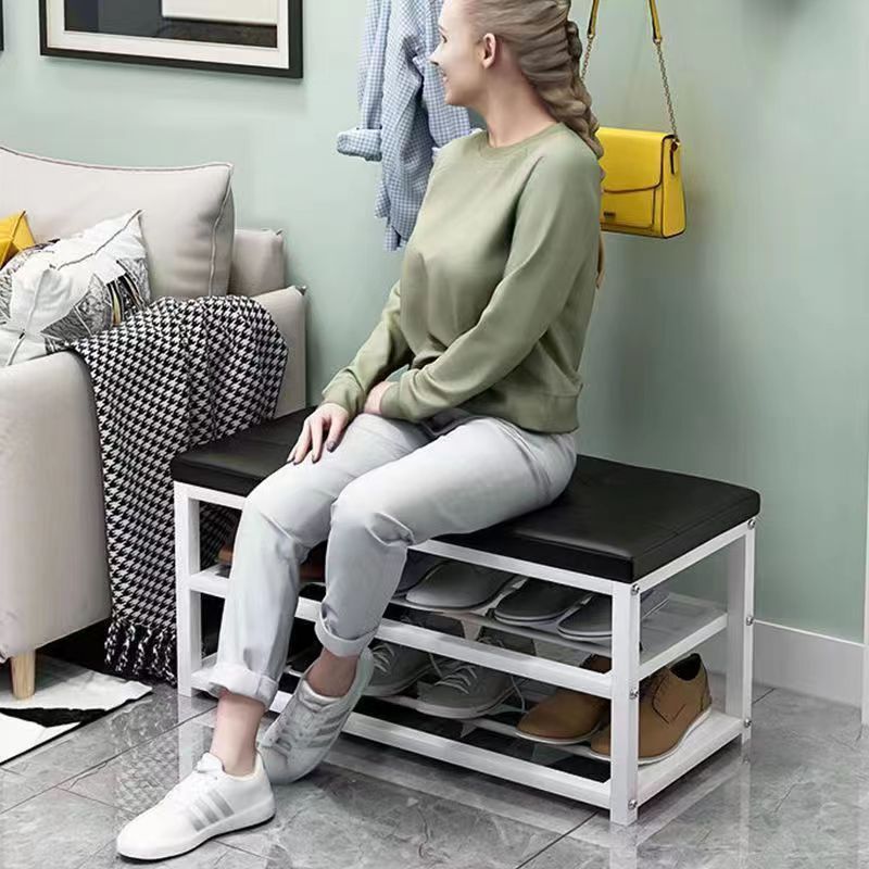 집 입구 휴식 신발 랙 간단한 다층 신발 랙 보관 신발 캐비닛 철제 소프트 백 다기능 착용 Jiangwu