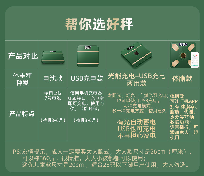 전자 체중계, 가정용 소형 체중계, 광에너지 충전식 체중계, 지능형 체지방 체중계