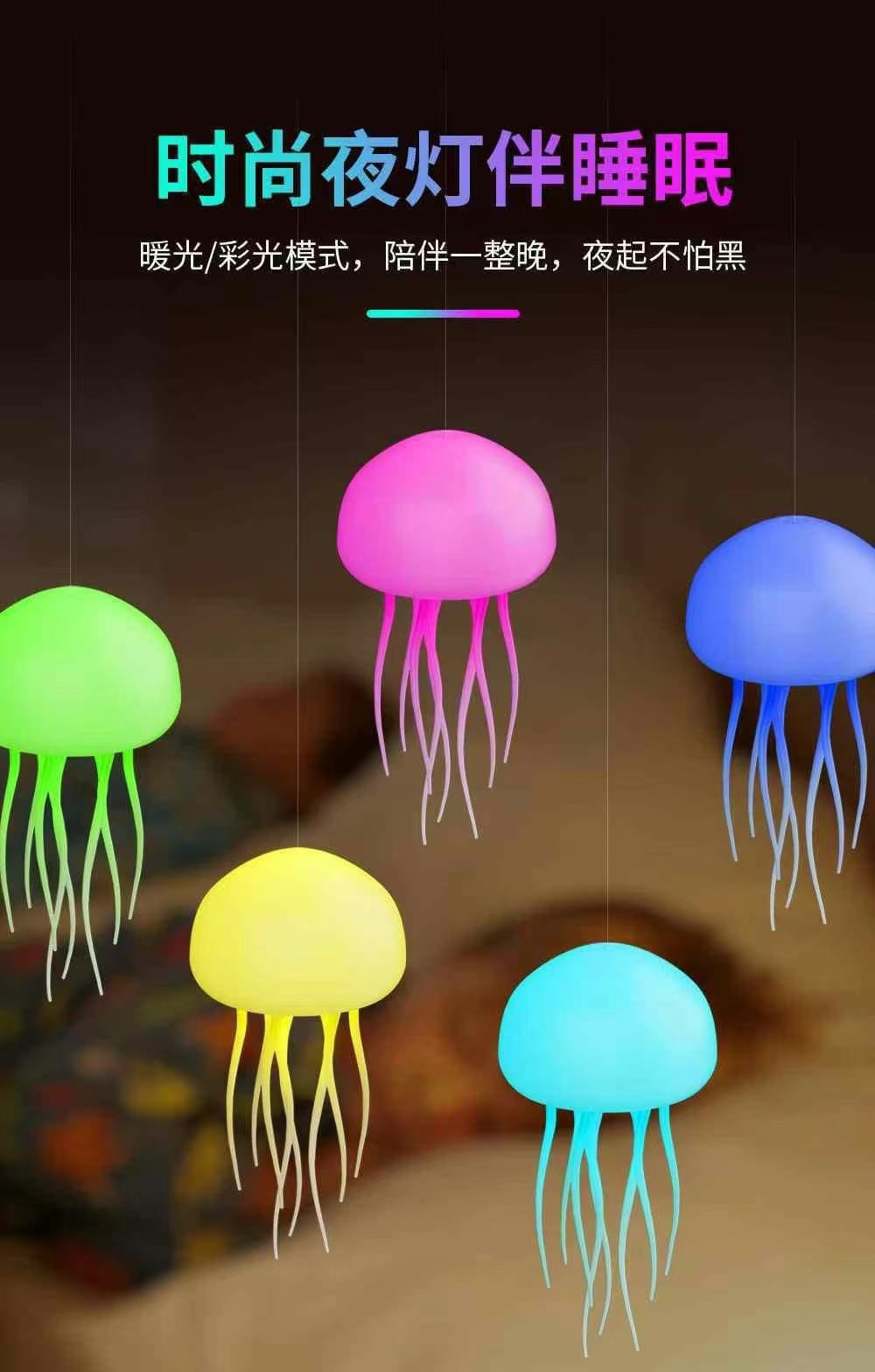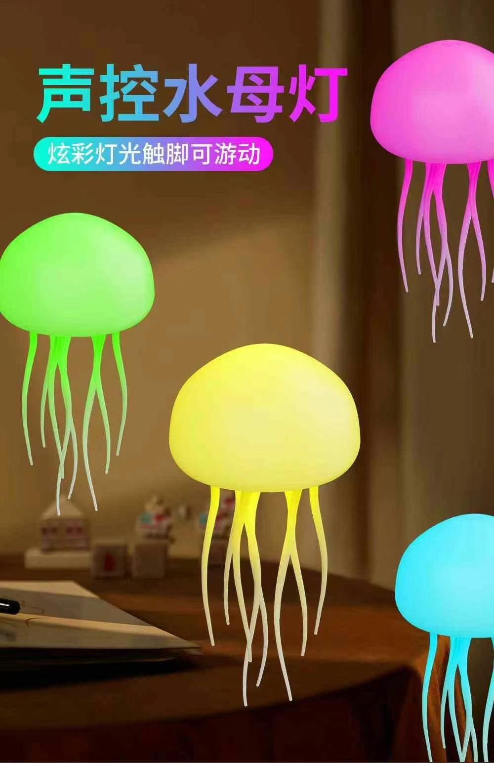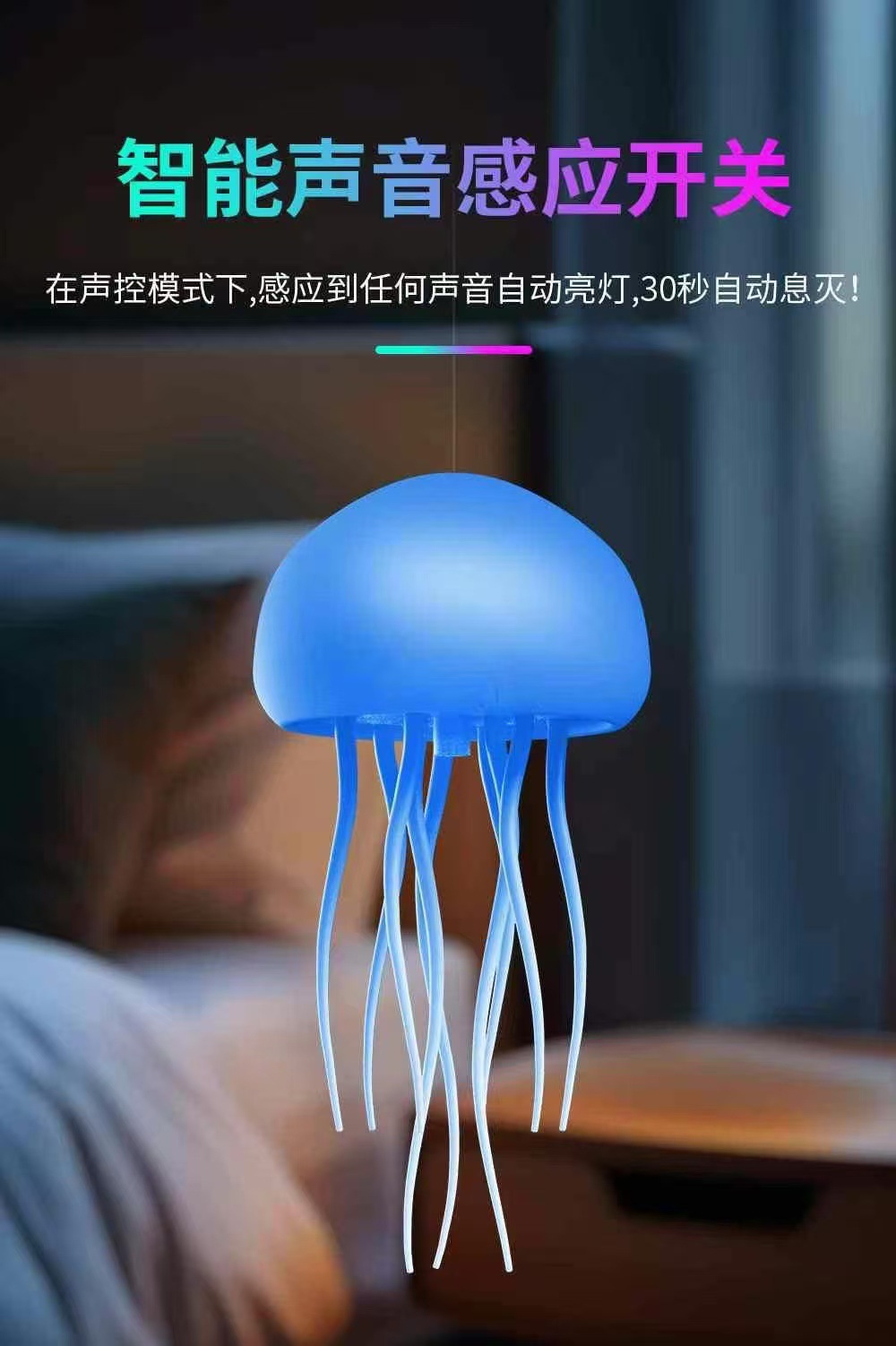 서스펜션 음성 제어 해파리 램프 7 색 매직 그라데이션 수영 해파리 램프 유도 분위기 야간 조명 크리 에이 티브 크로스 보더스토어 가기