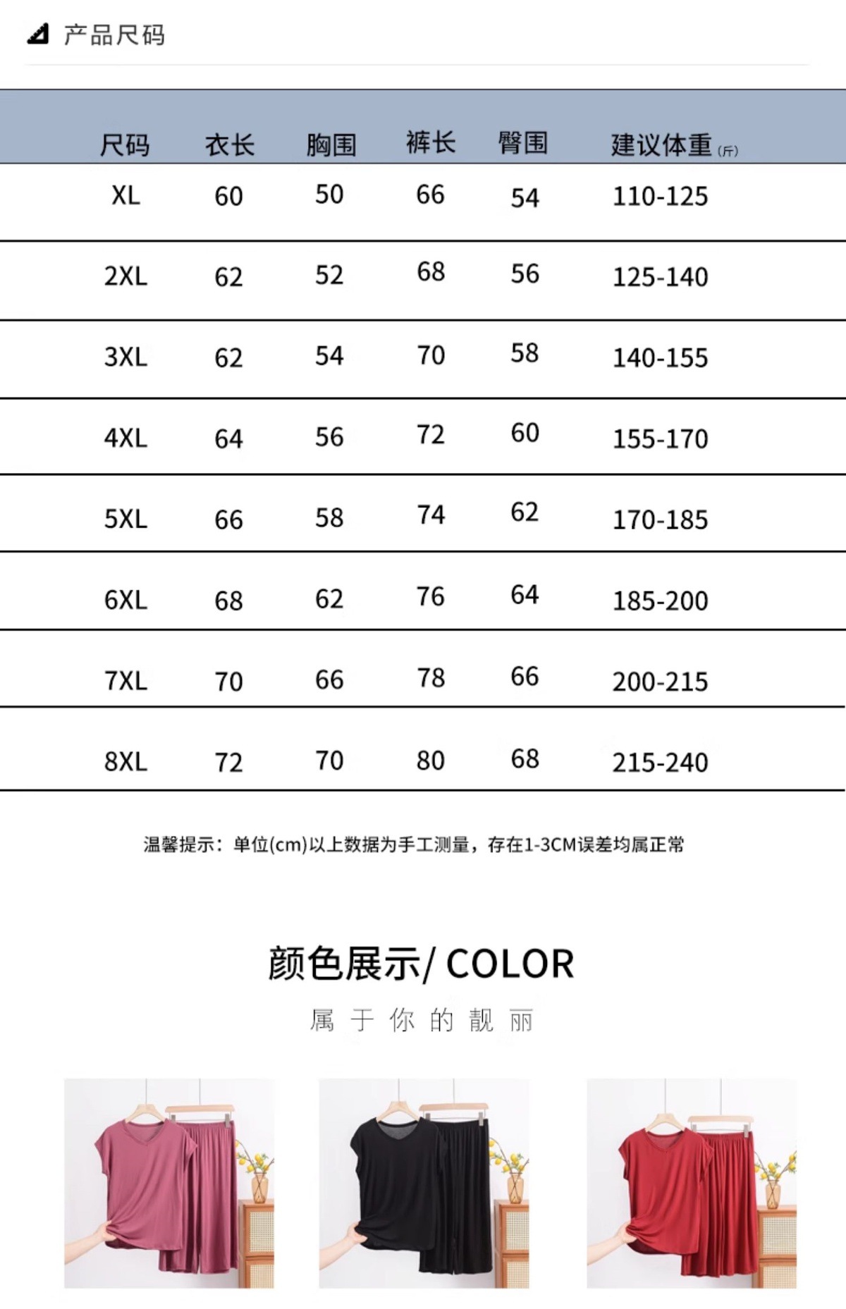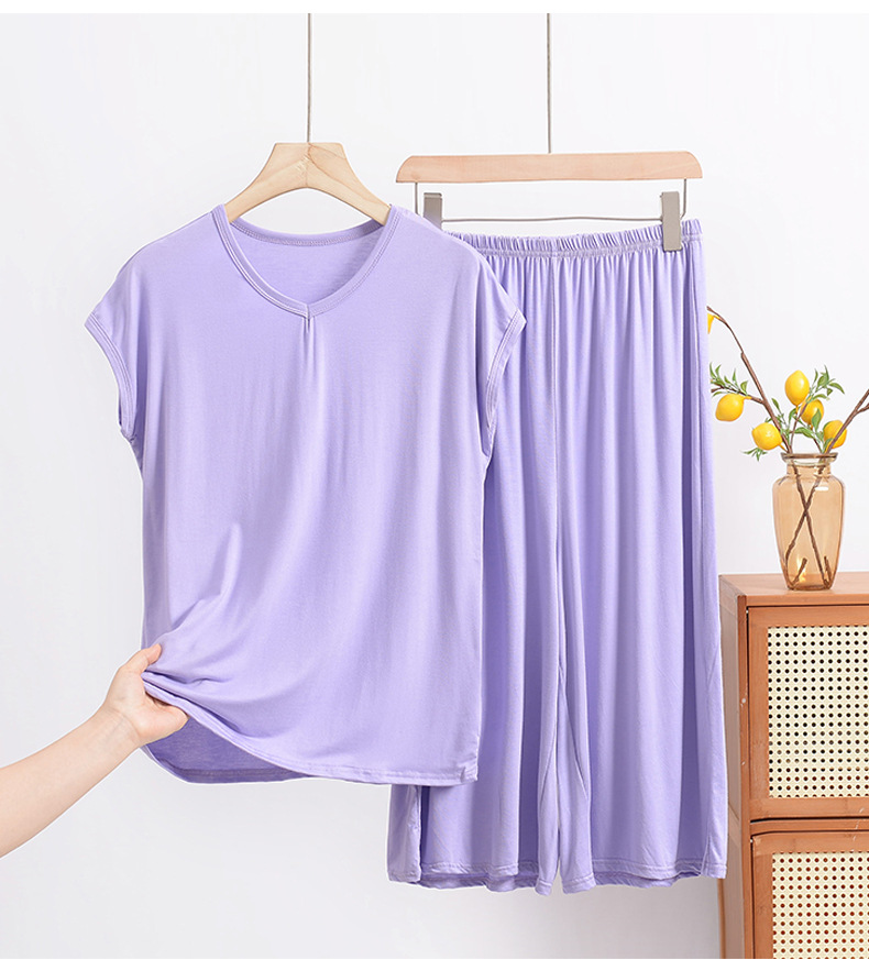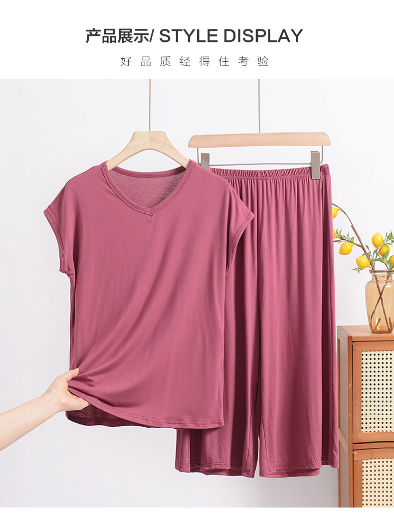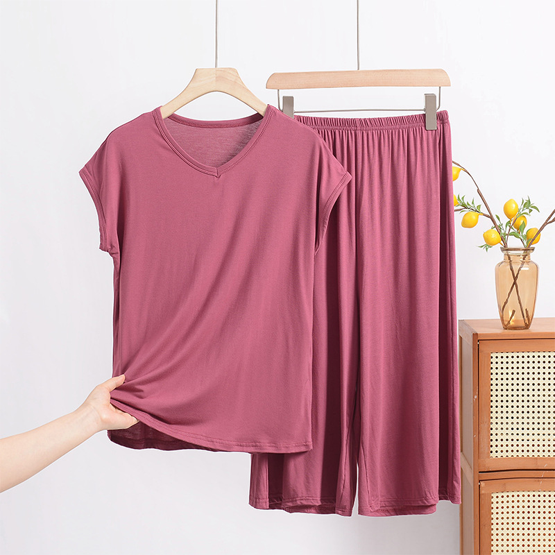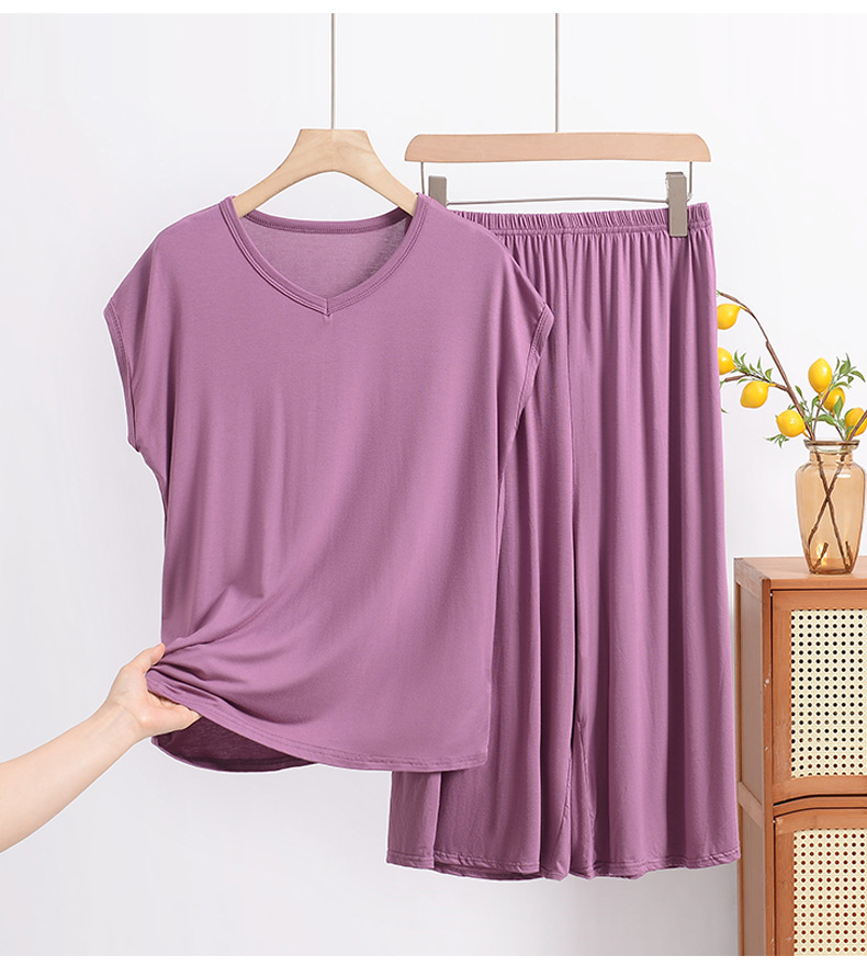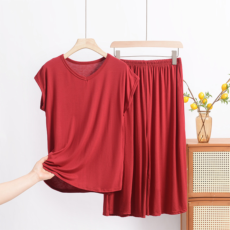 여름 얇은 모달 v 넥 조끼 크롭 바지 투피스 세트 여성용 대형 잠옷 파자마 바지 루즈 아우터 슈트