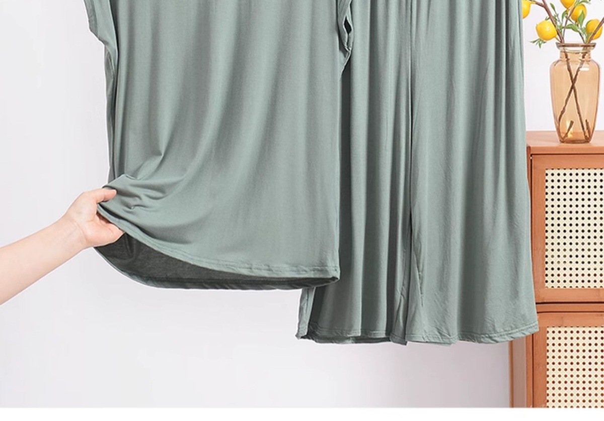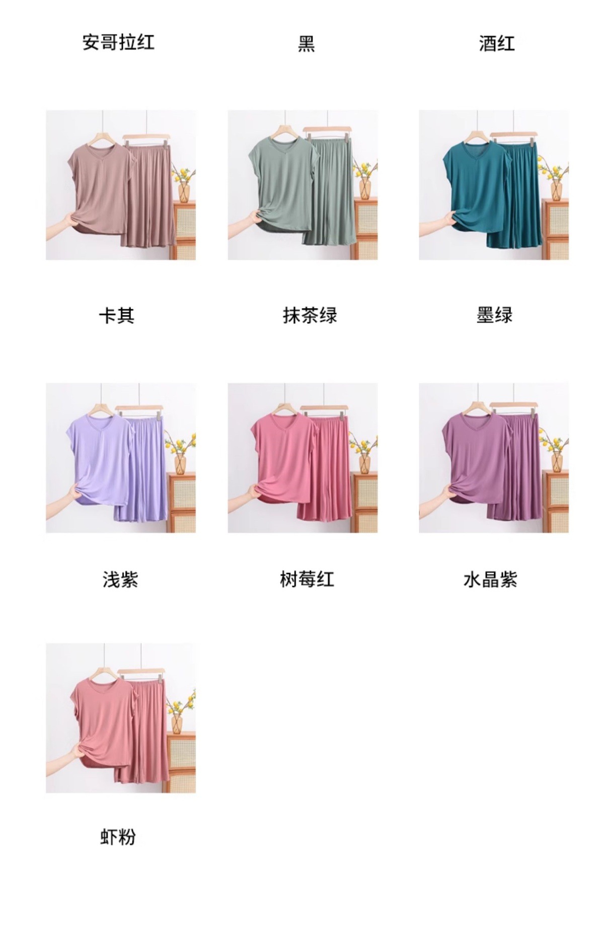 여름 얇은 모달 v 넥 조끼 크롭 바지 투피스 세트 여성용 대형 잠옷 파자마 바지 루즈 아우터 슈트스토어 가기