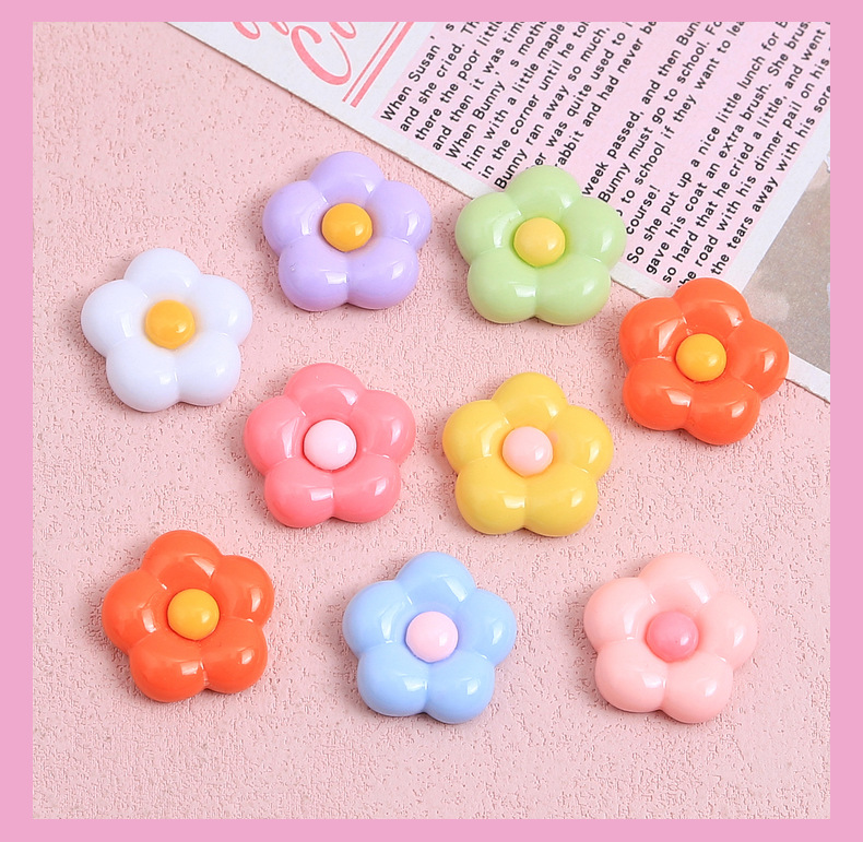 만화 신선한 다섯 꽃잎 꽃 크리 에이 티브 수제 diy 크림 접착제 수지 액세서리 작은 액세서리 쥬얼리 재료 패키지 도매