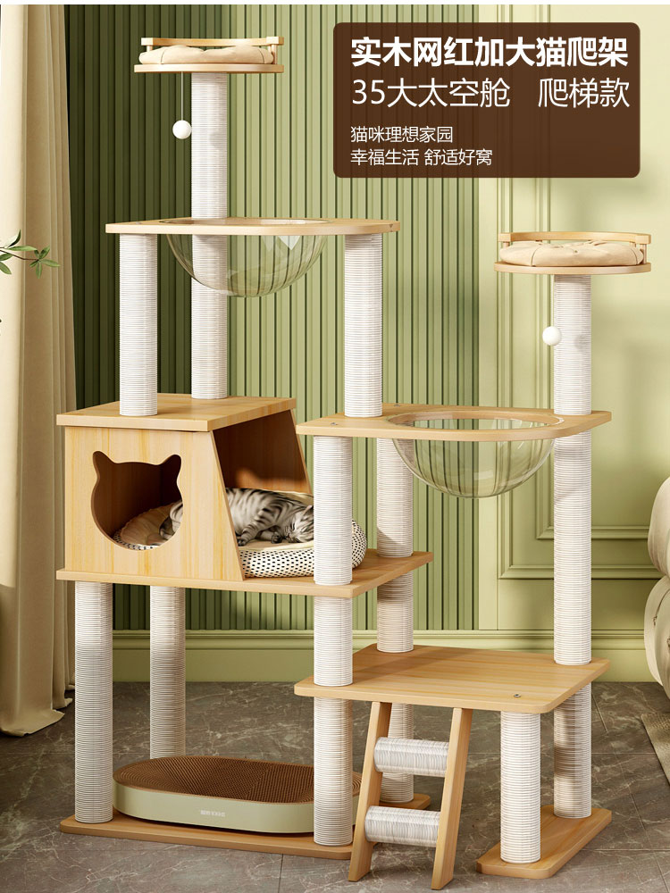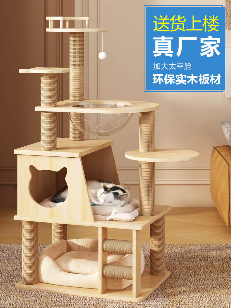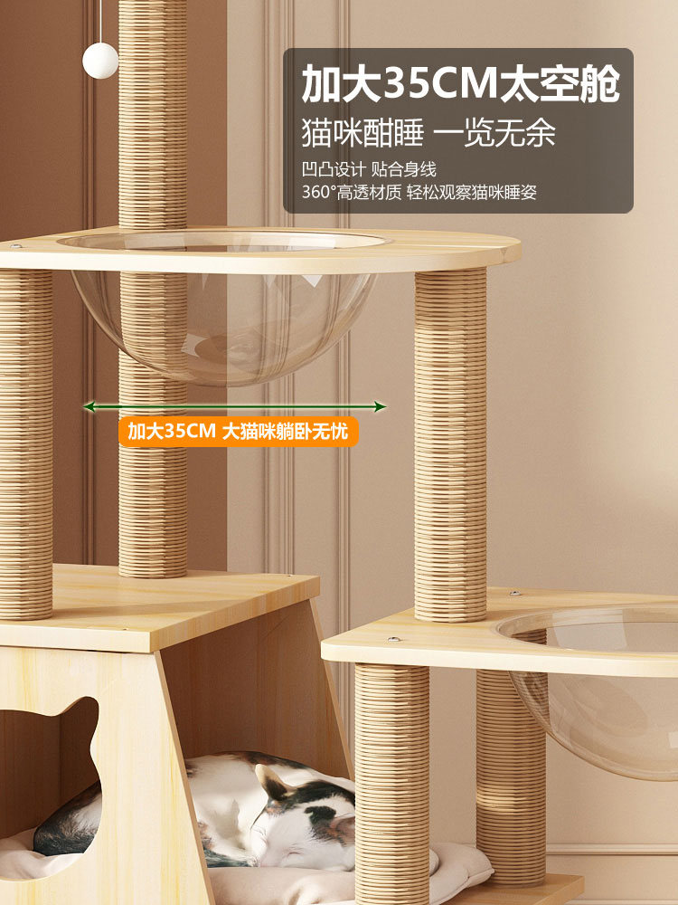 원목 고양이 클라이밍 프레임, 고양이 둥지, 고양이 트리, 일체형 고양이 스크래치 컬럼, 대형 천둥, 확장된 우주 캡슐 고양이 용품