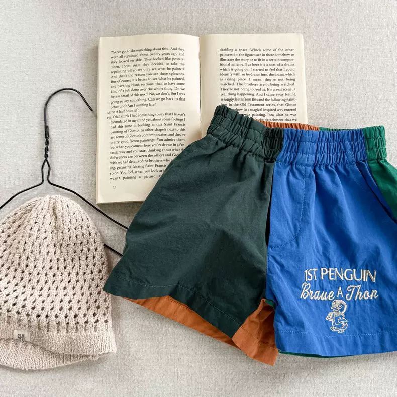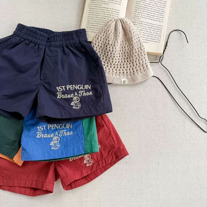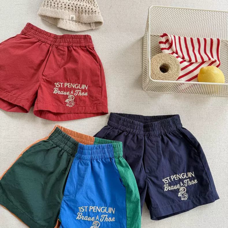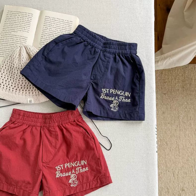 매우 세련되고 다재다능합니다 ~ 한국어 버전 어린이 만화 문자 자수 속건성 반바지 남성과 여성 아기 3점 캐주얼 바지 여름스토어 가기