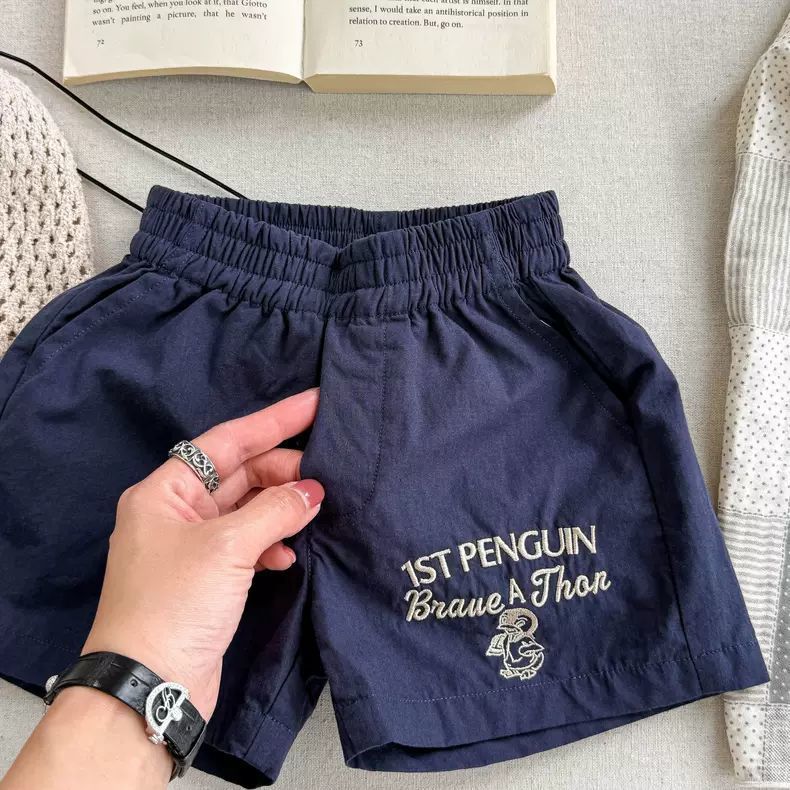 매우 세련되고 다재다능합니다 ~ 한국어 버전 어린이 만화 문자 자수 속건성 반바지 남성과 여성 아기 3점 캐주얼 바지 여름
