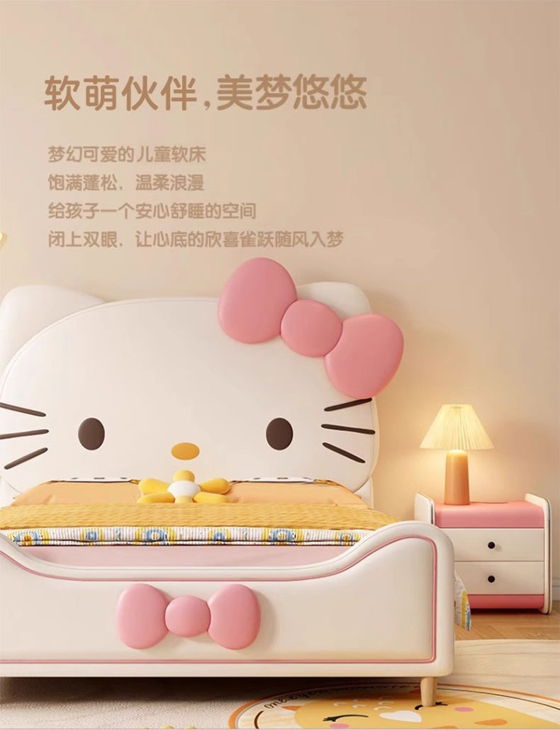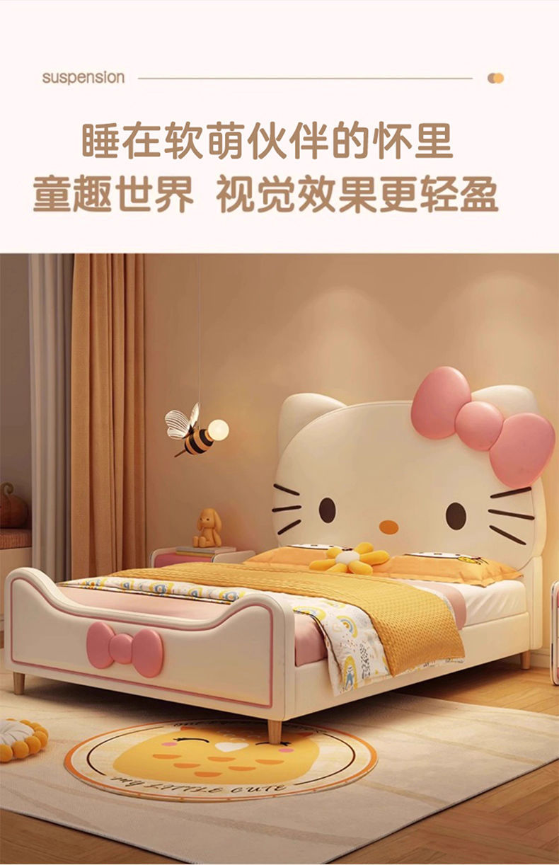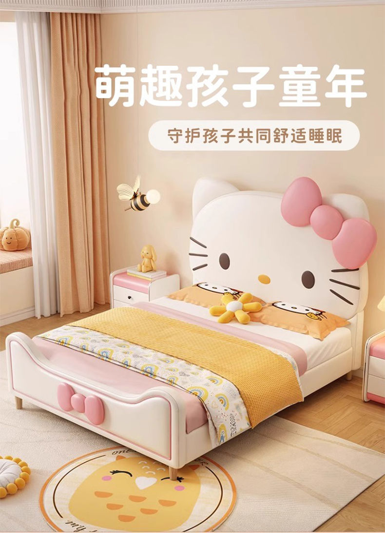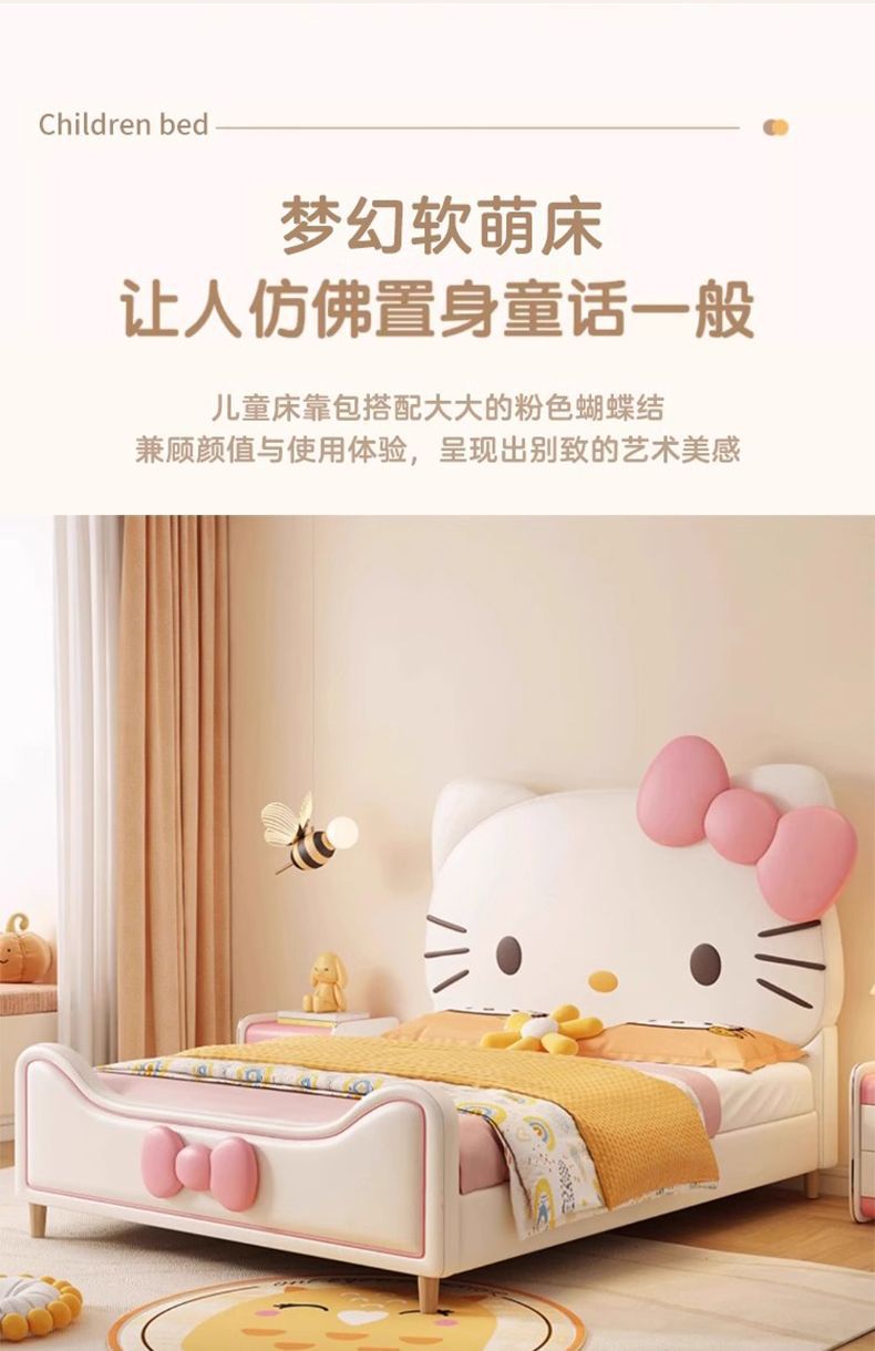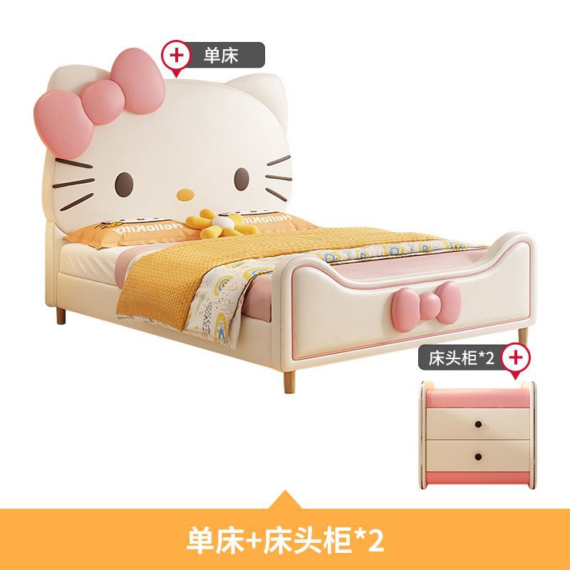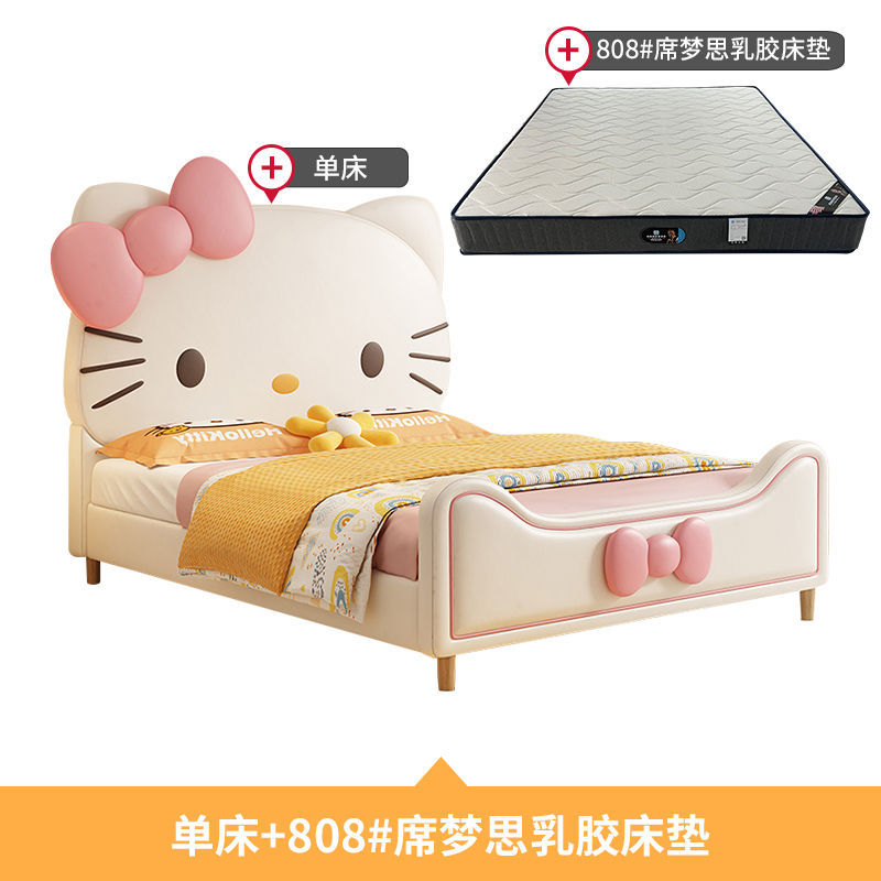 어린이 침대 소녀 꿈꾸는 공주 침대 만화 새로운 가죽 침대 아기 침대 단단한 어린이 방 침실 싱글 침대스토어 가기