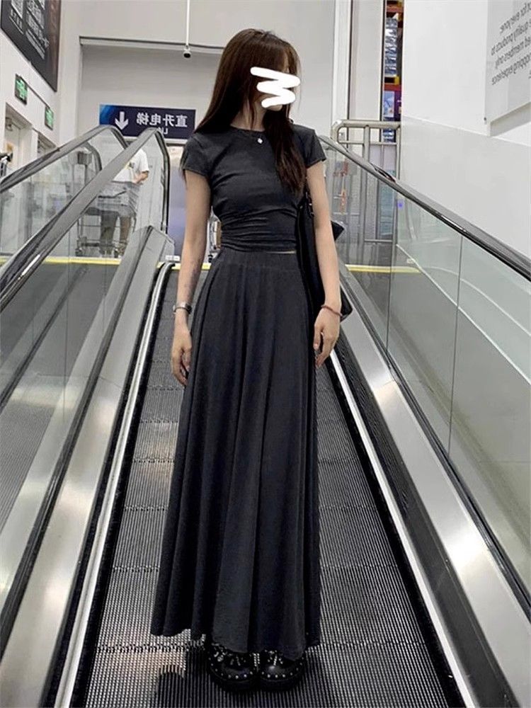 2025 봄 여름 어울리는 연령 감소 투피스 세트 틈새 디자인 단색 인기 예쁜 고급 드레스 롱 스커트스토어 가기