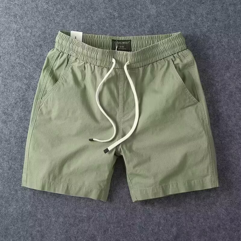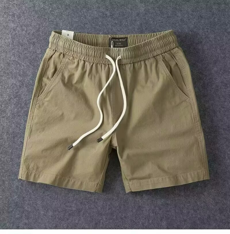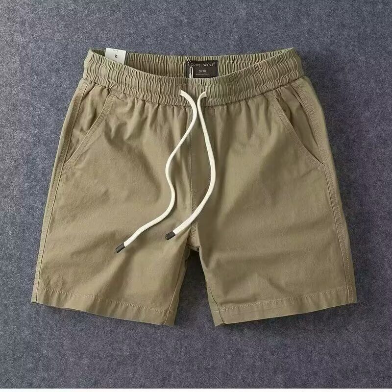 순면 핸섬 남성 바지 여름 트렌디 브랜드 일본 스트레치 작업복 캐주얼 반바지 남성 루즈한 4부 바지