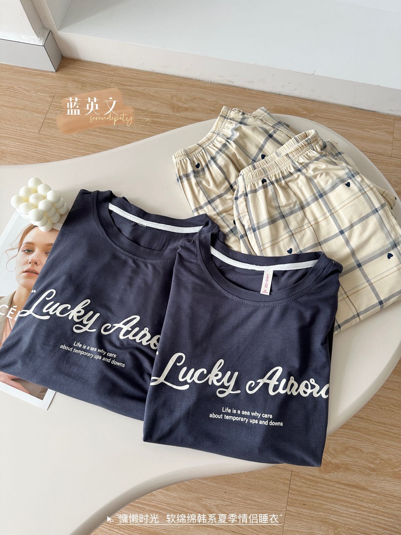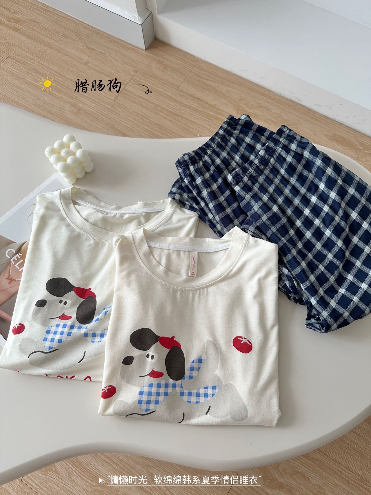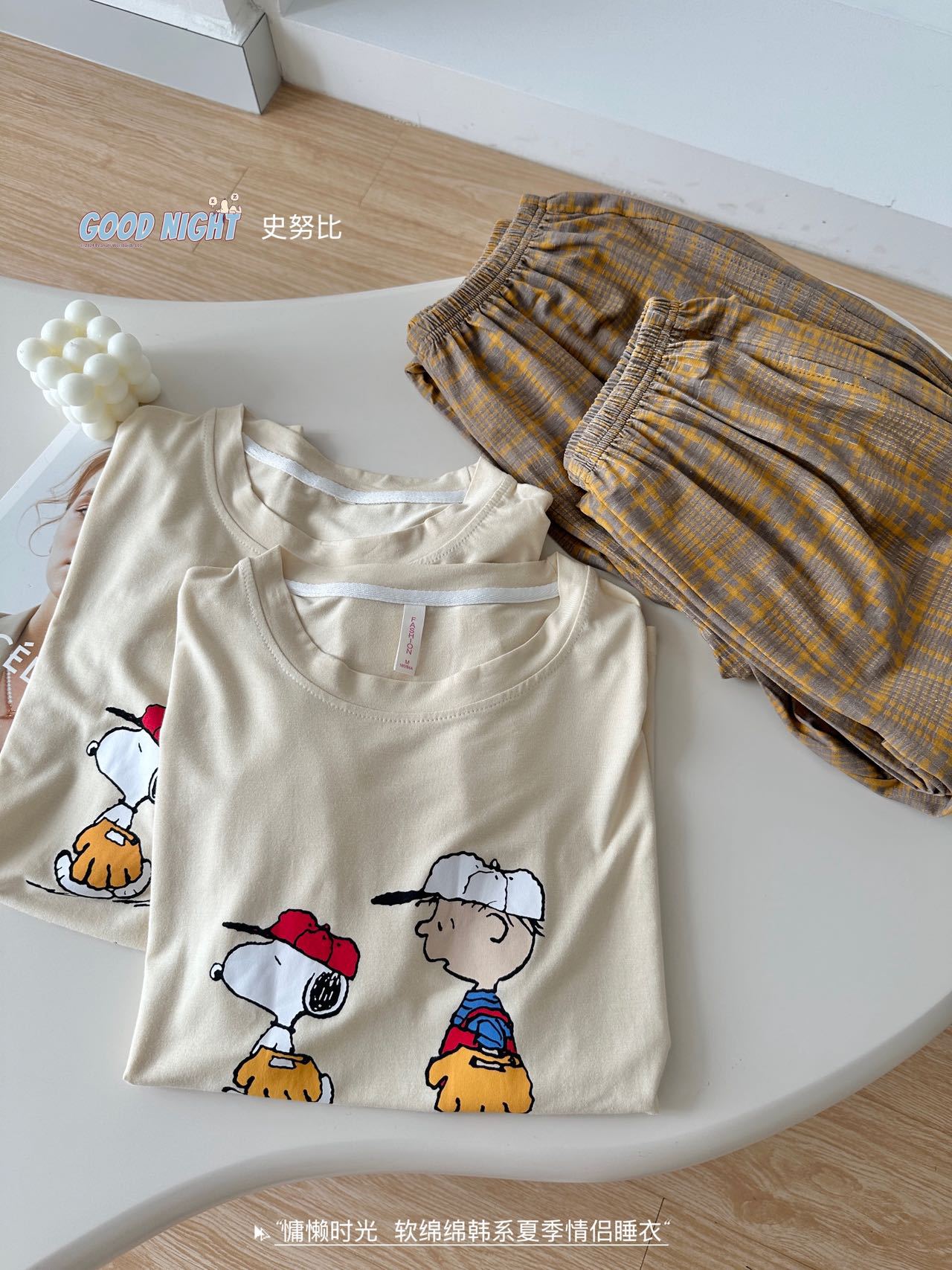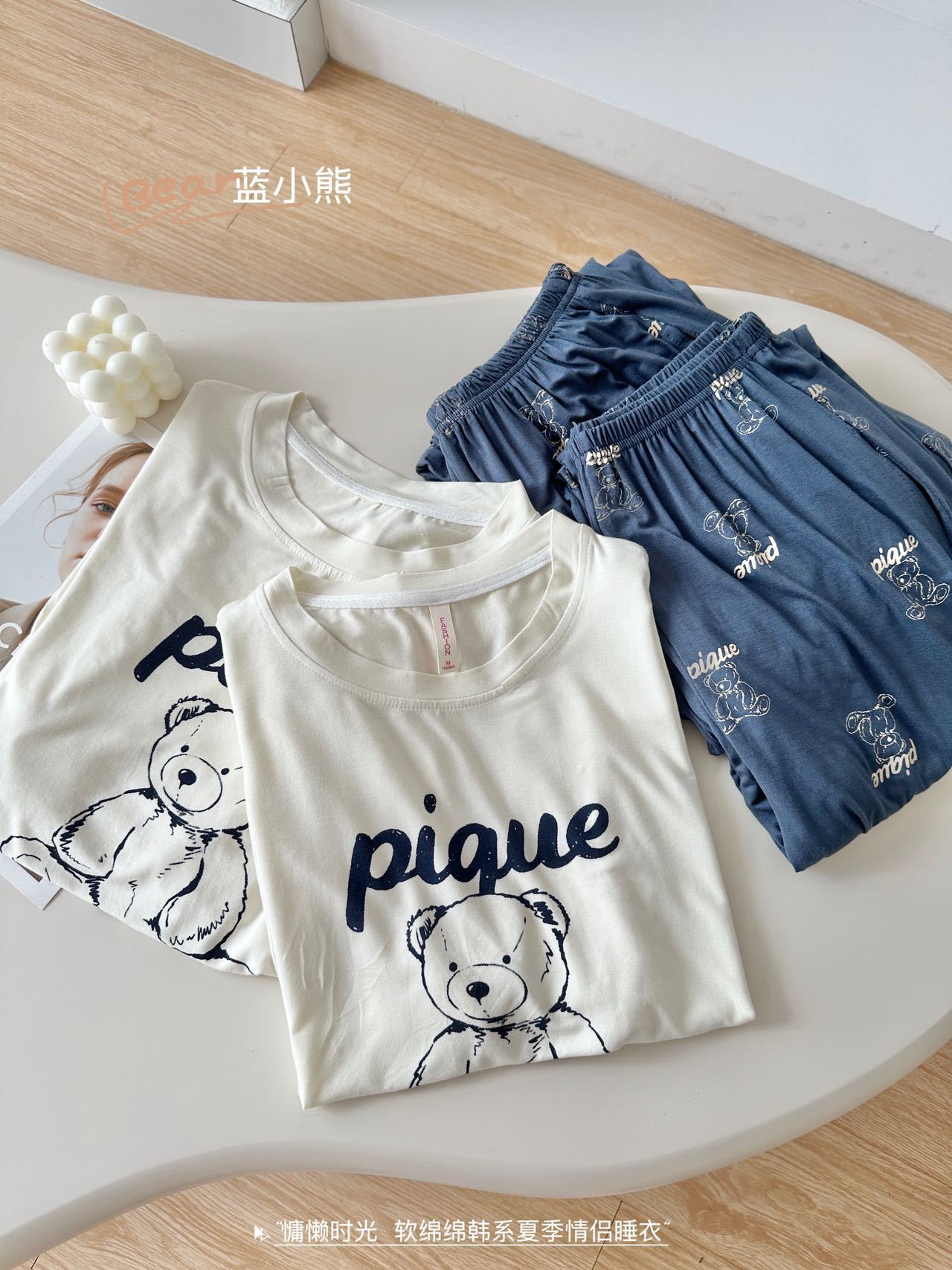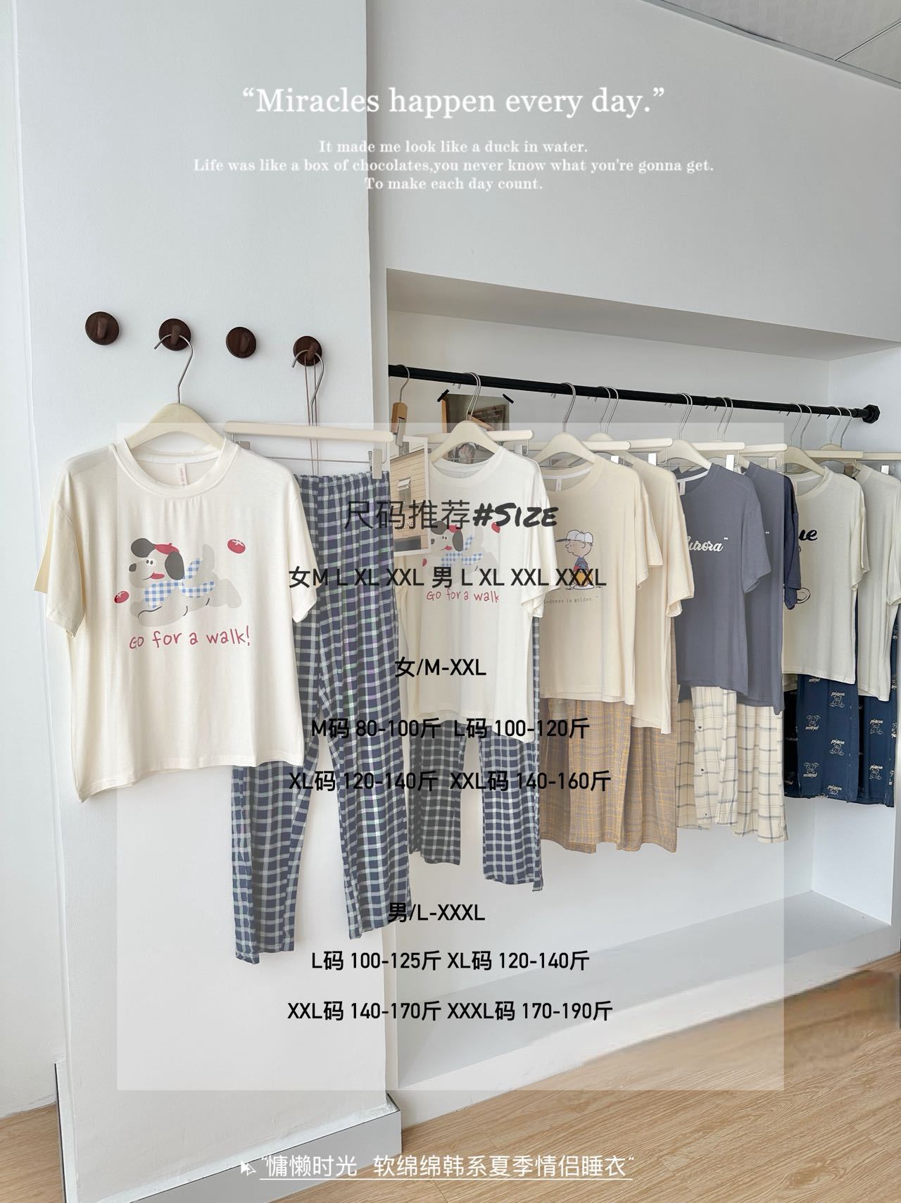 커플 잠옷 봄과 여름 모달 얇은 반팔 바지 2025 새로운 남성과 여성의 만화 가정 의류 세트스토어 가기