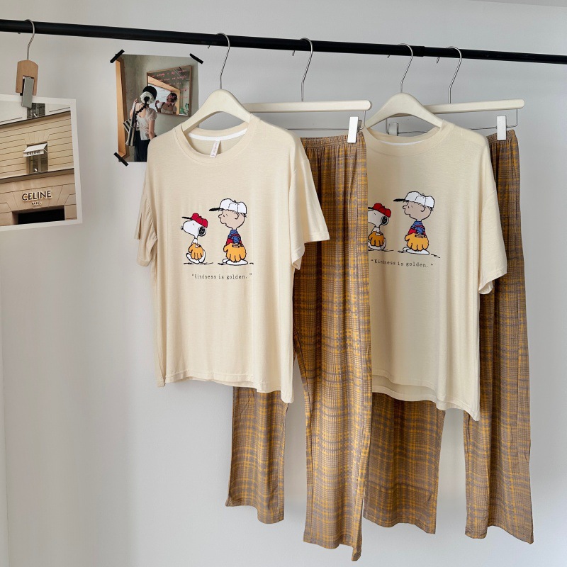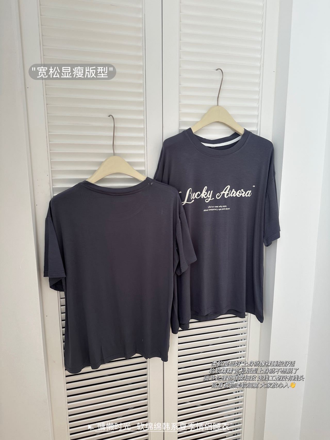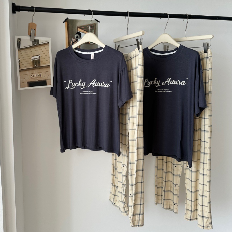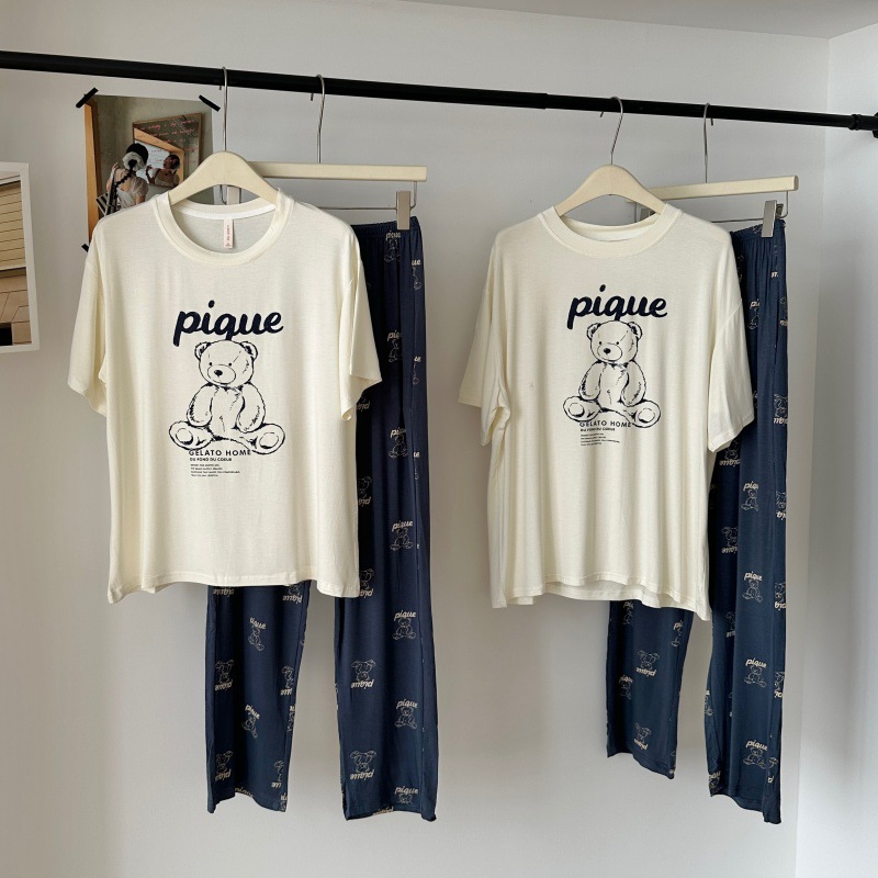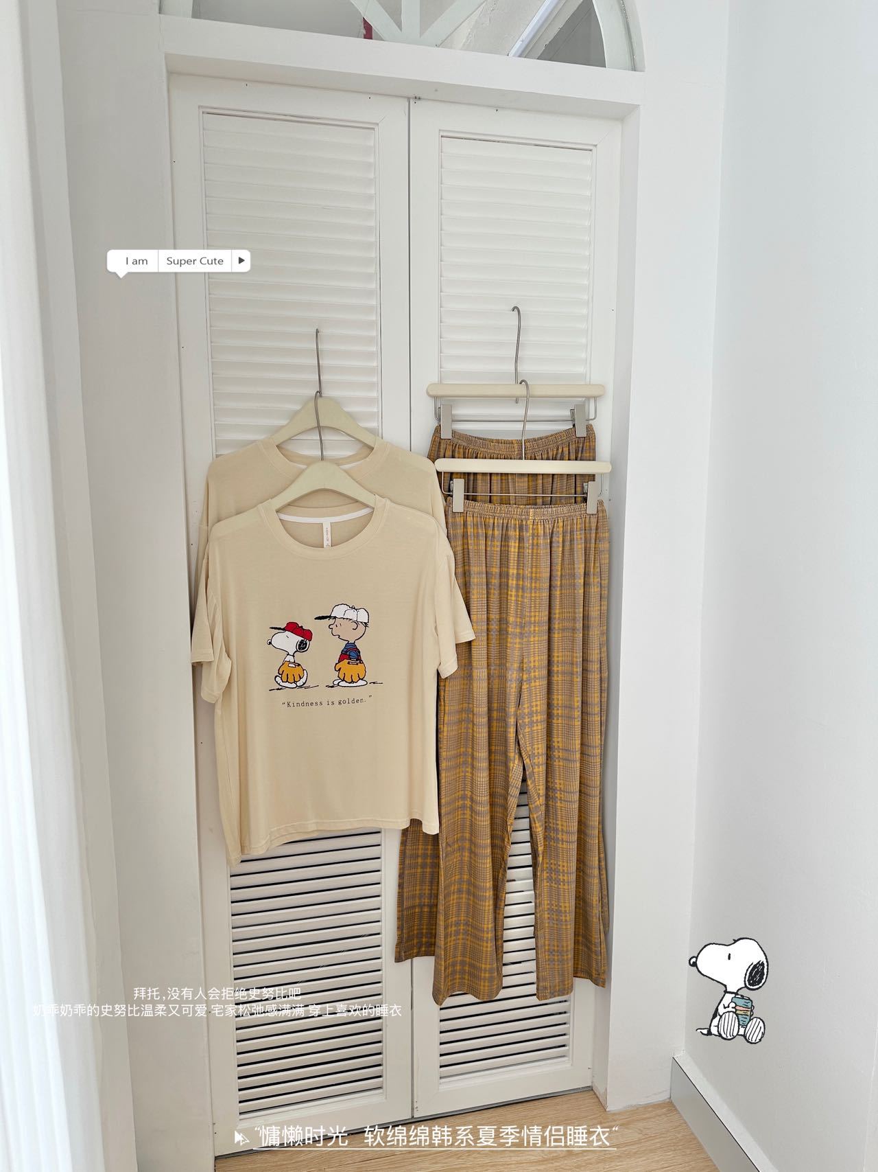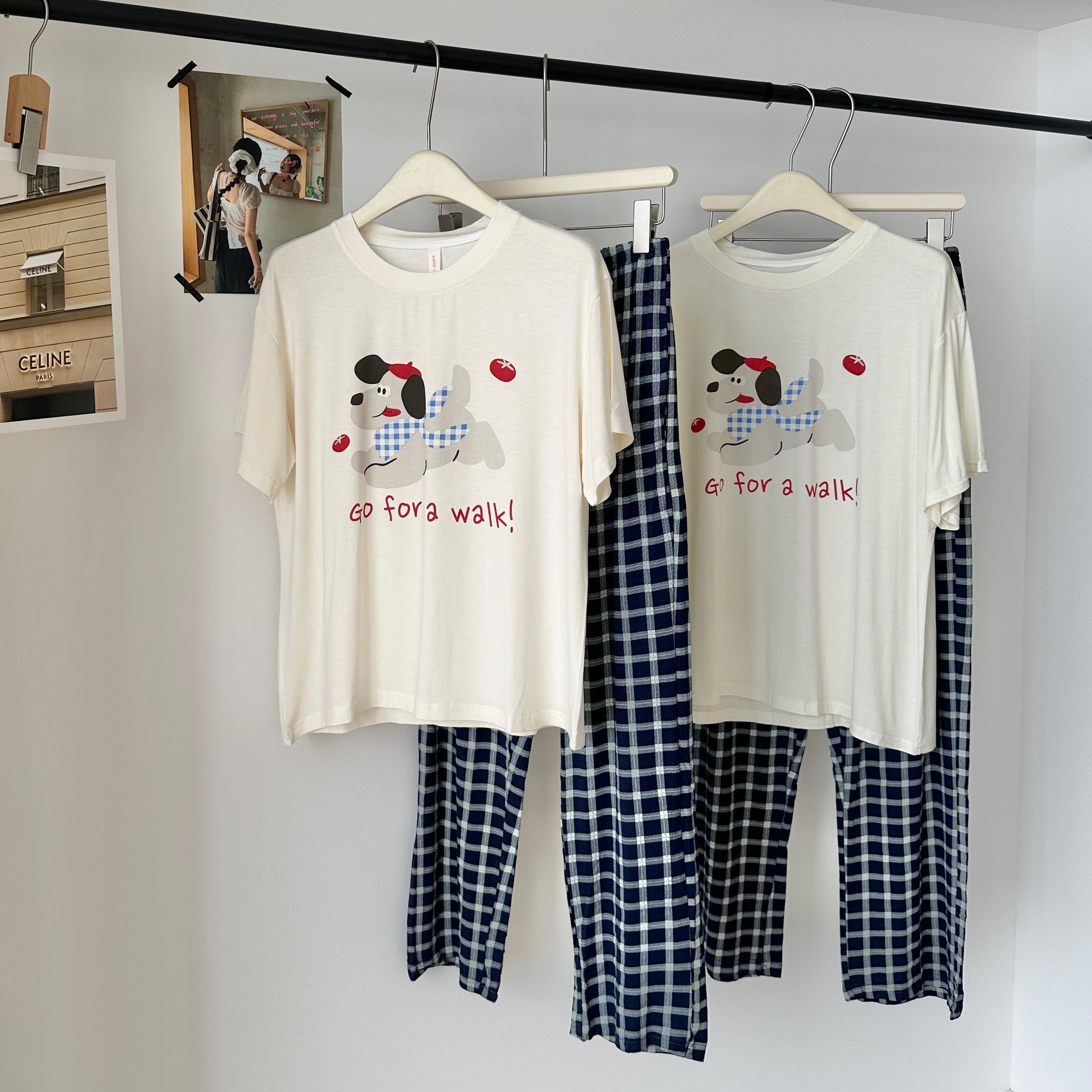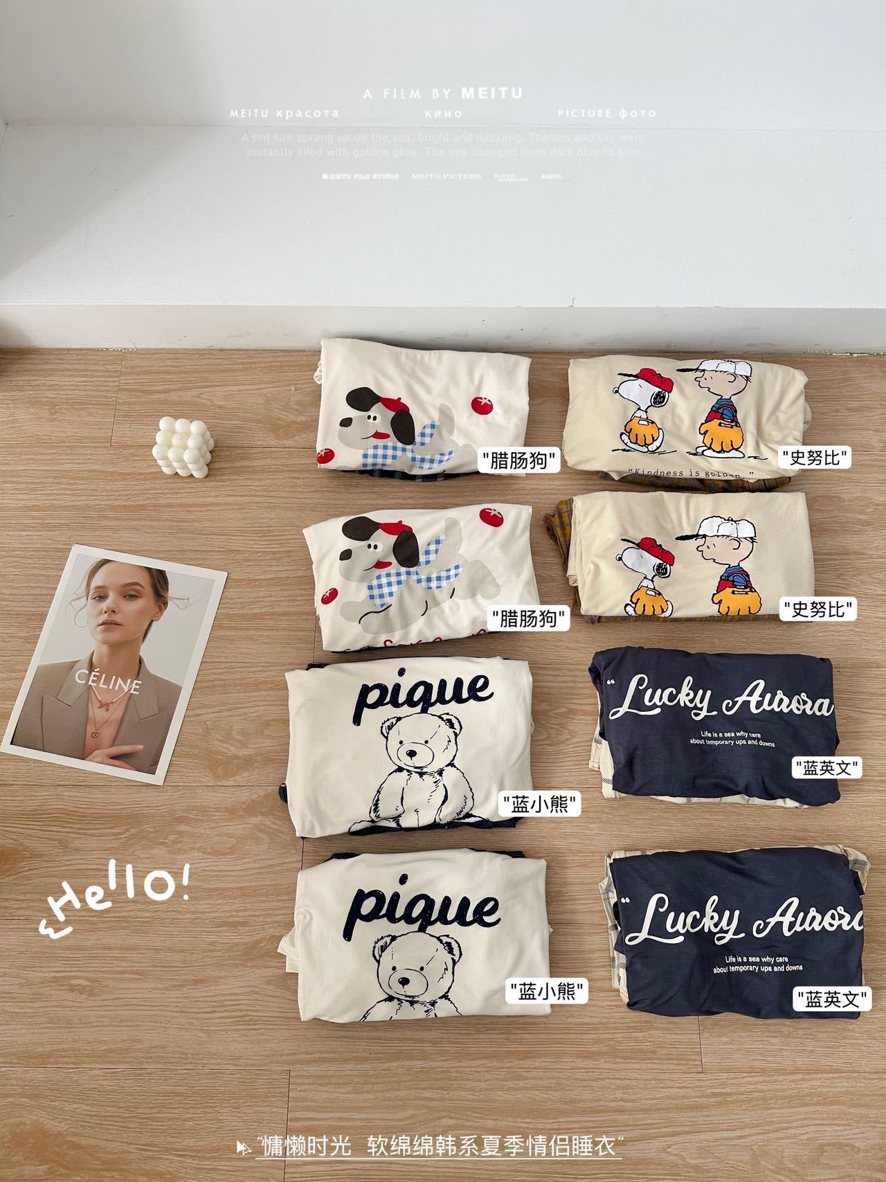 커플 잠옷 봄과 여름 모달 얇은 반팔 바지 2025 새로운 남성과 여성의 만화 가정 의류 세트스토어 가기