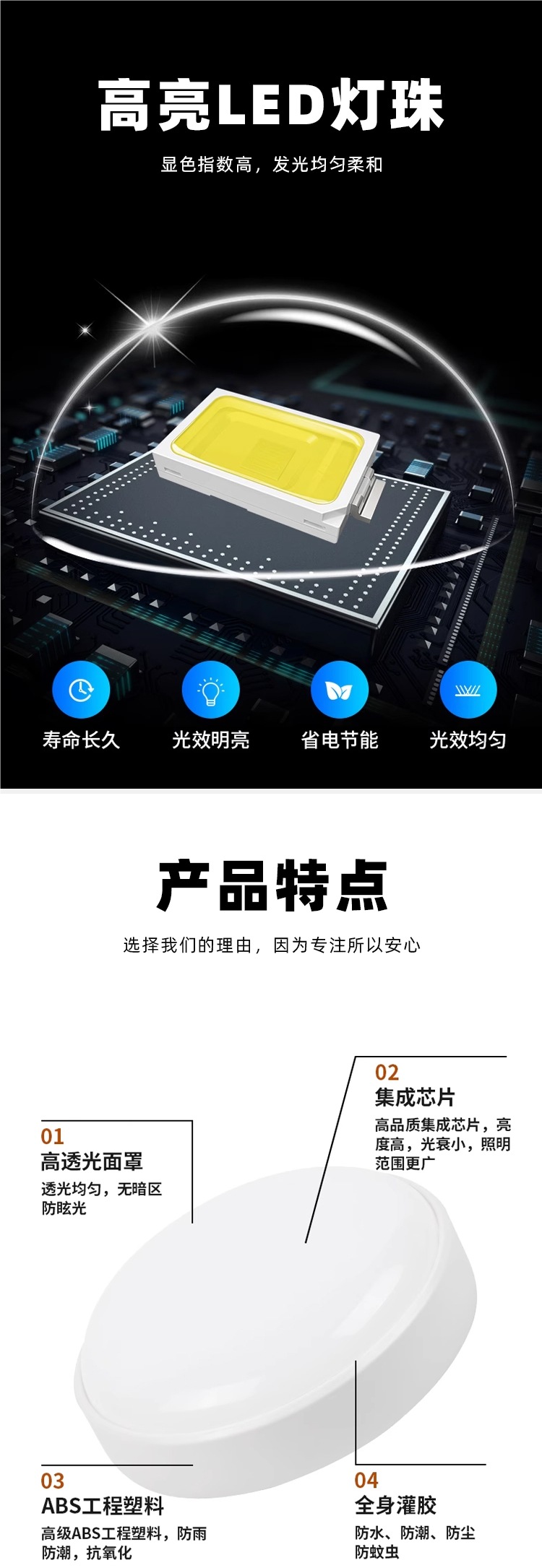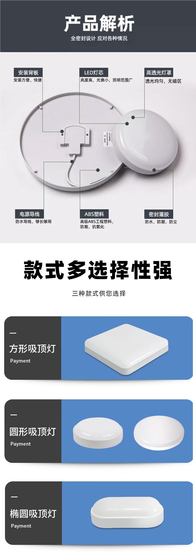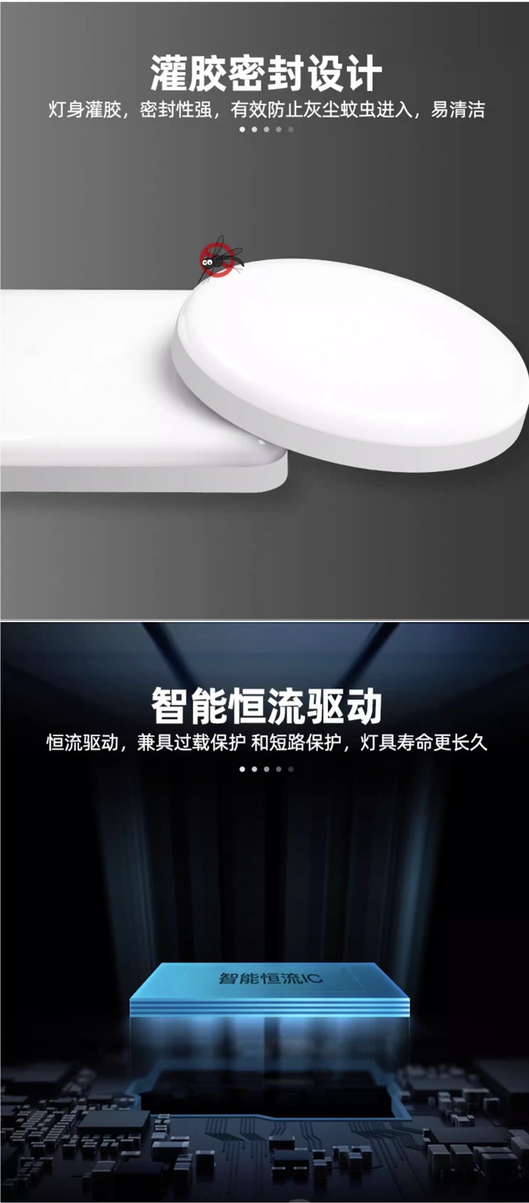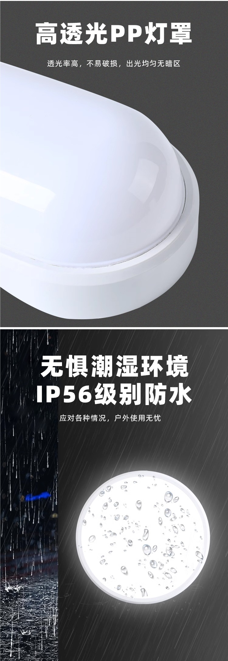 IP56 밀봉 LED 방수 및 방충 주방 및 욕실 천장 조명 욕실 화장실 방습 조명 야외 통합 3방지 조명스토어 가기