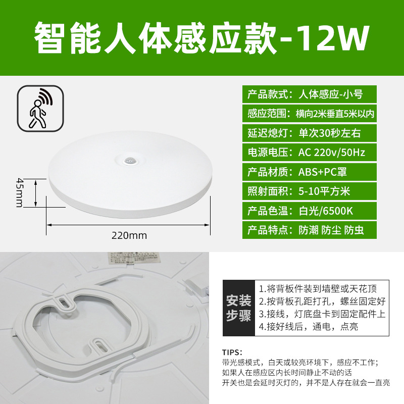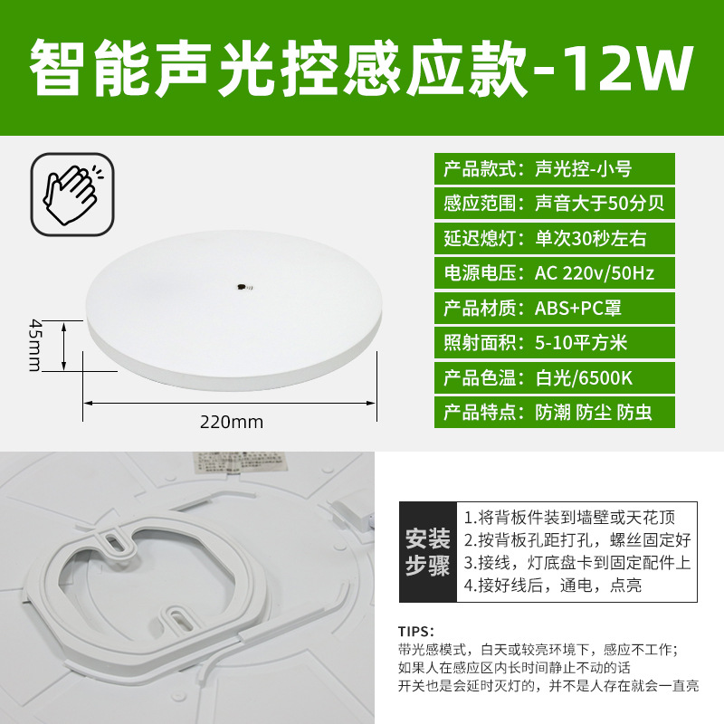 • 방수 [소리 및 조명 제어] 소형 원형 조명 12W