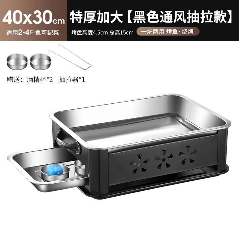 & 생선구이로 스테인레스 스틸 상업용 레스토랑 생선구이 접시 가정용 숯불 그릴 무연 숯불 구이 직사각형 알코올 스토브스토어 가기