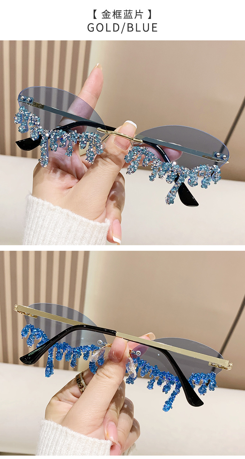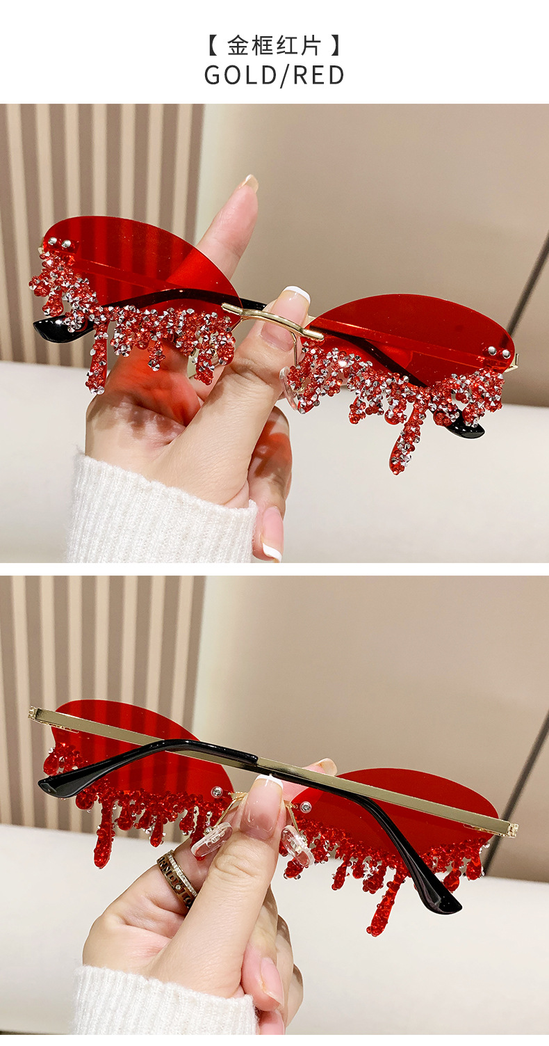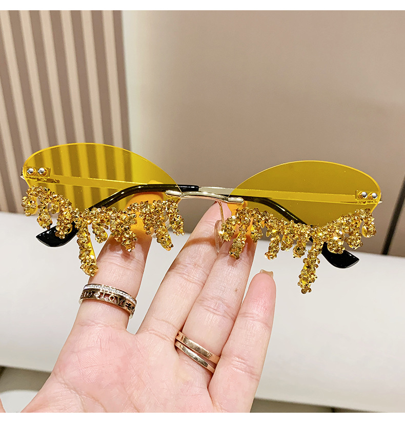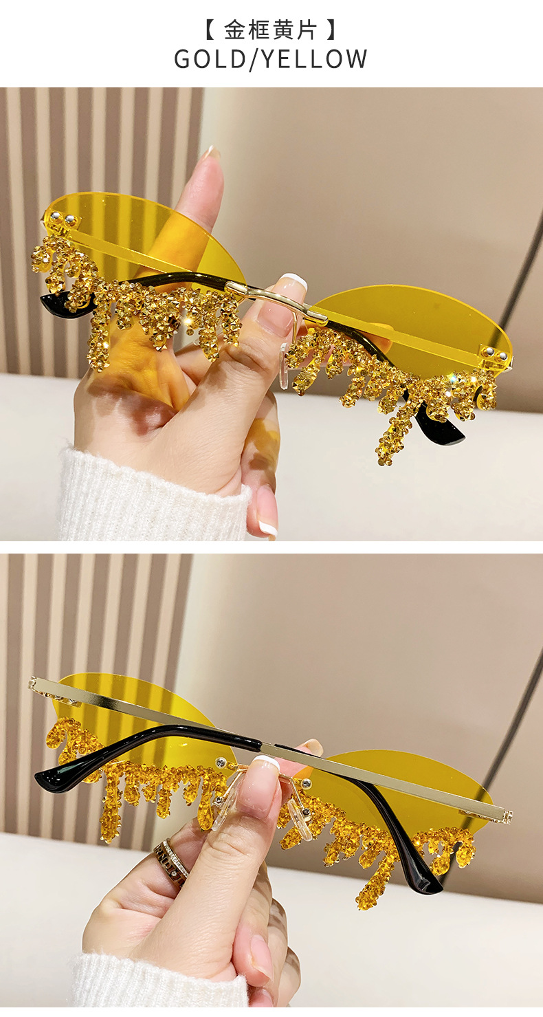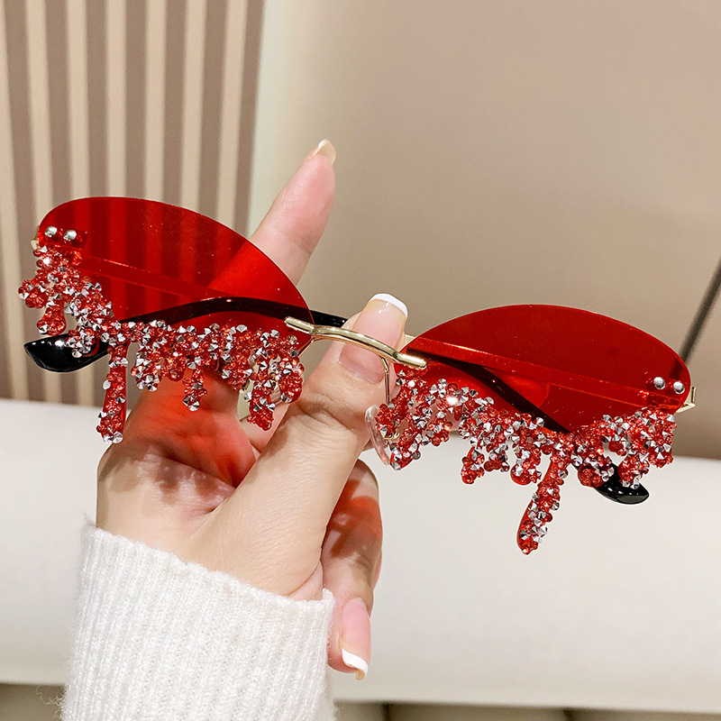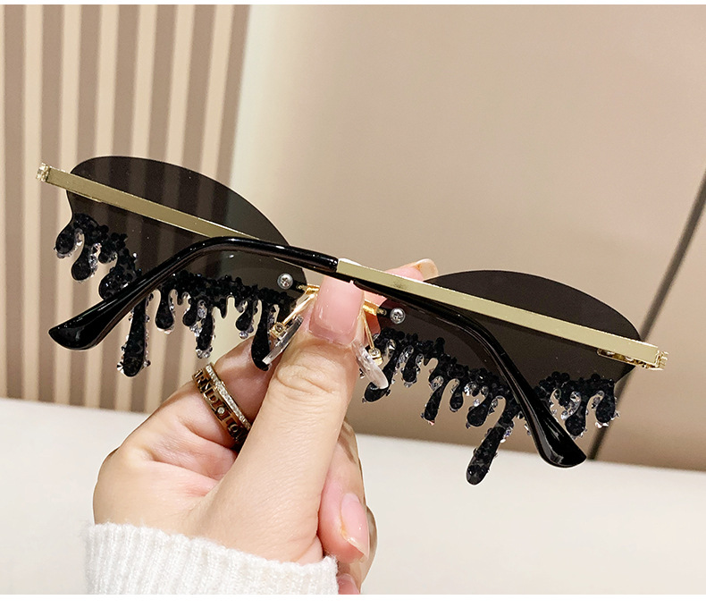 국경을 넘는 유럽과 미국의 새로운 천사 눈물 수제 다이아몬드가 박힌 선글라스 재미있는 사진 창의적인 프레임리스 엣지 컷 선글라스