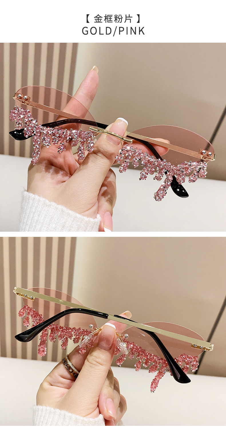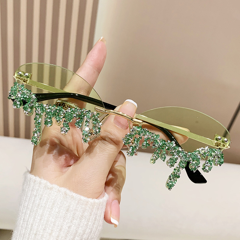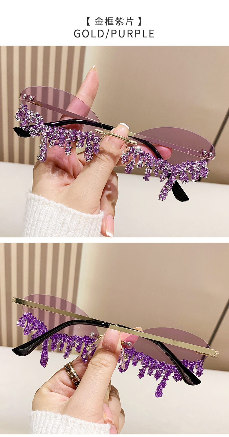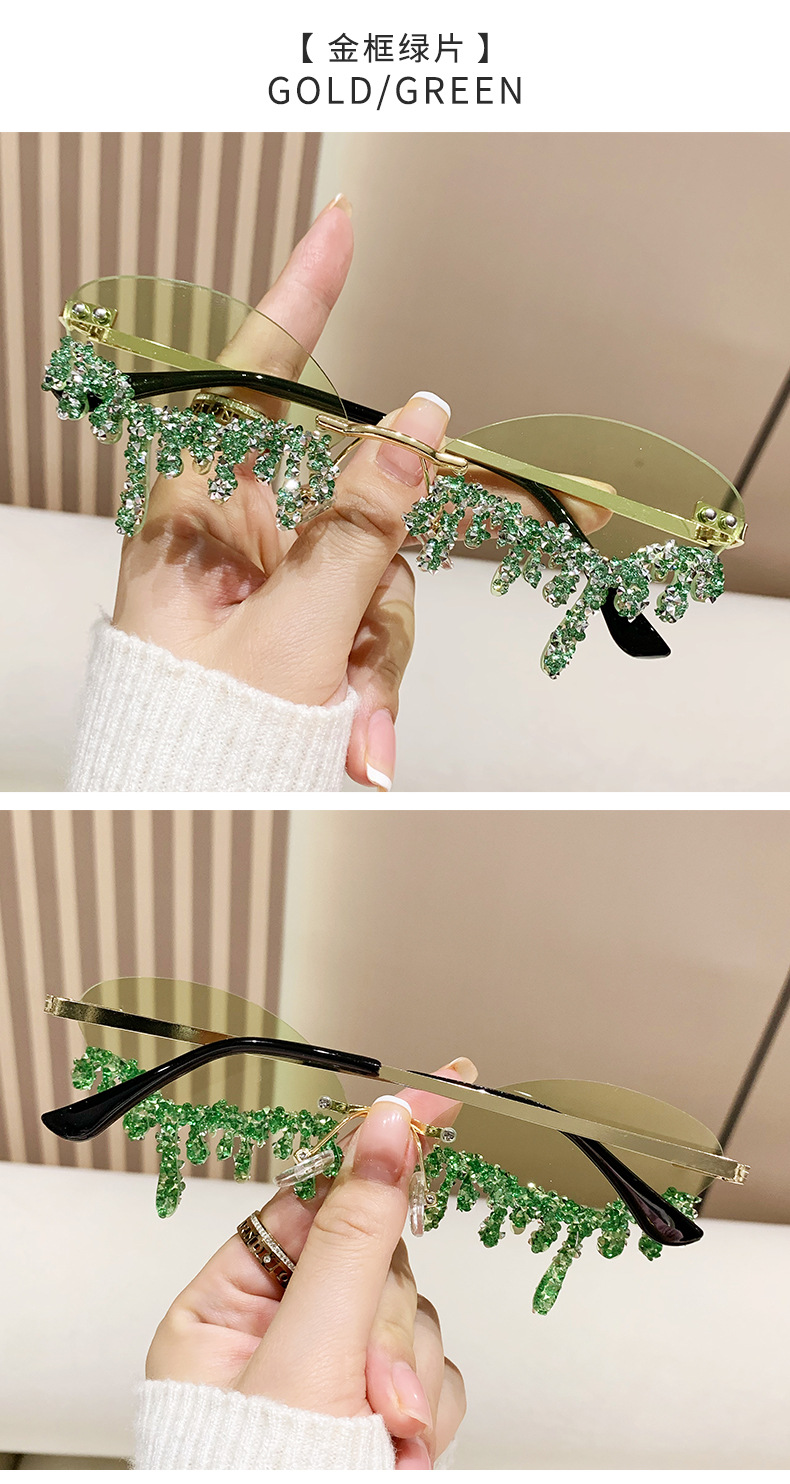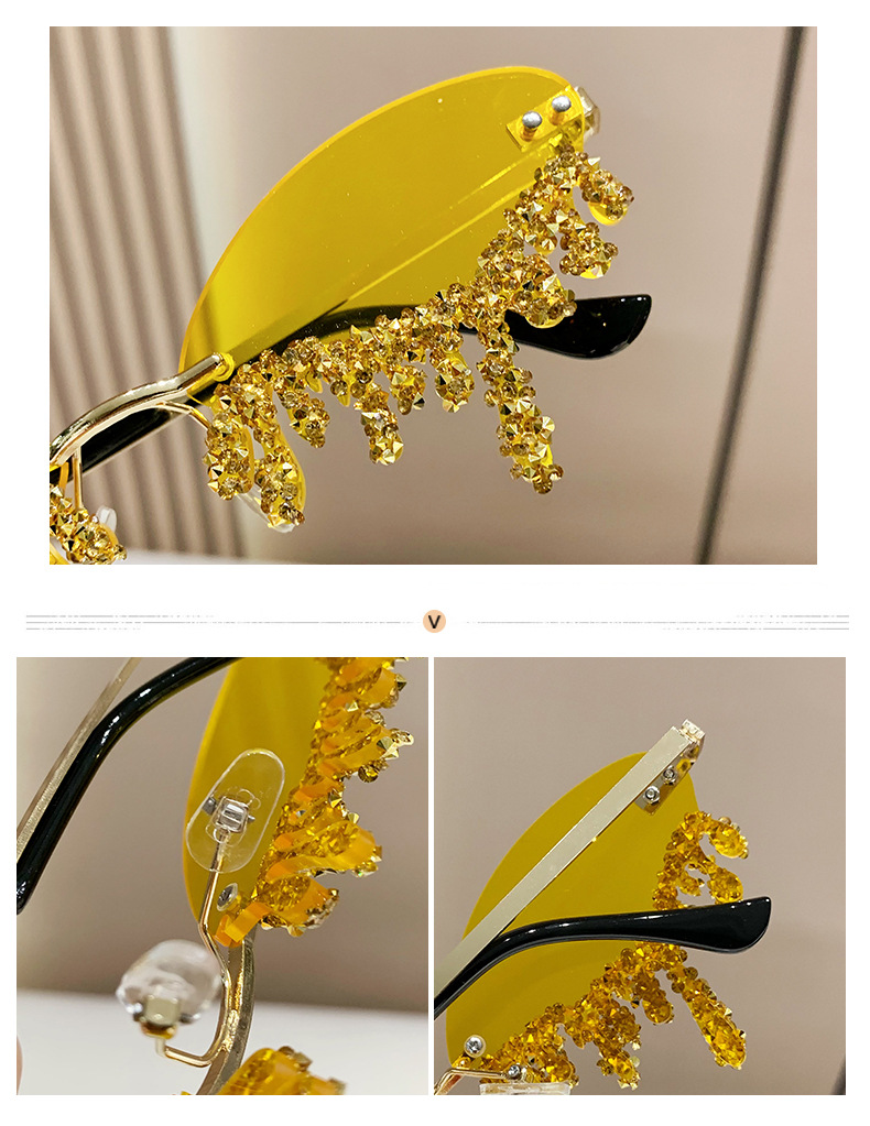 국경을 넘는 유럽과 미국의 새로운 천사 눈물 수제 다이아몬드가 박힌 선글라스 재미있는 사진 창의적인 프레임리스 엣지 컷 선글라스