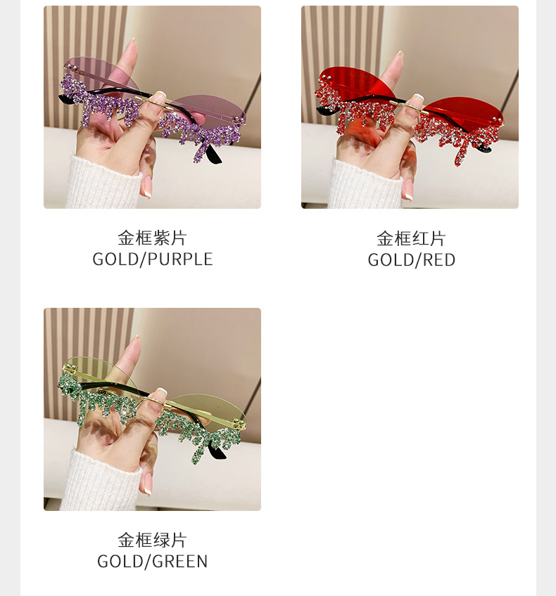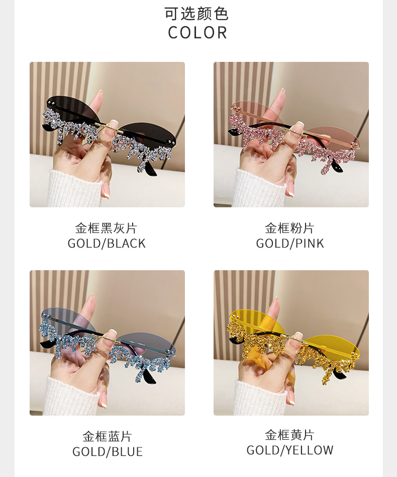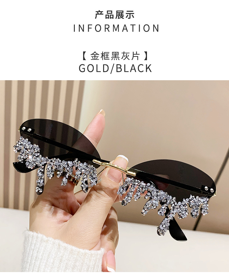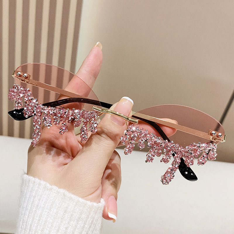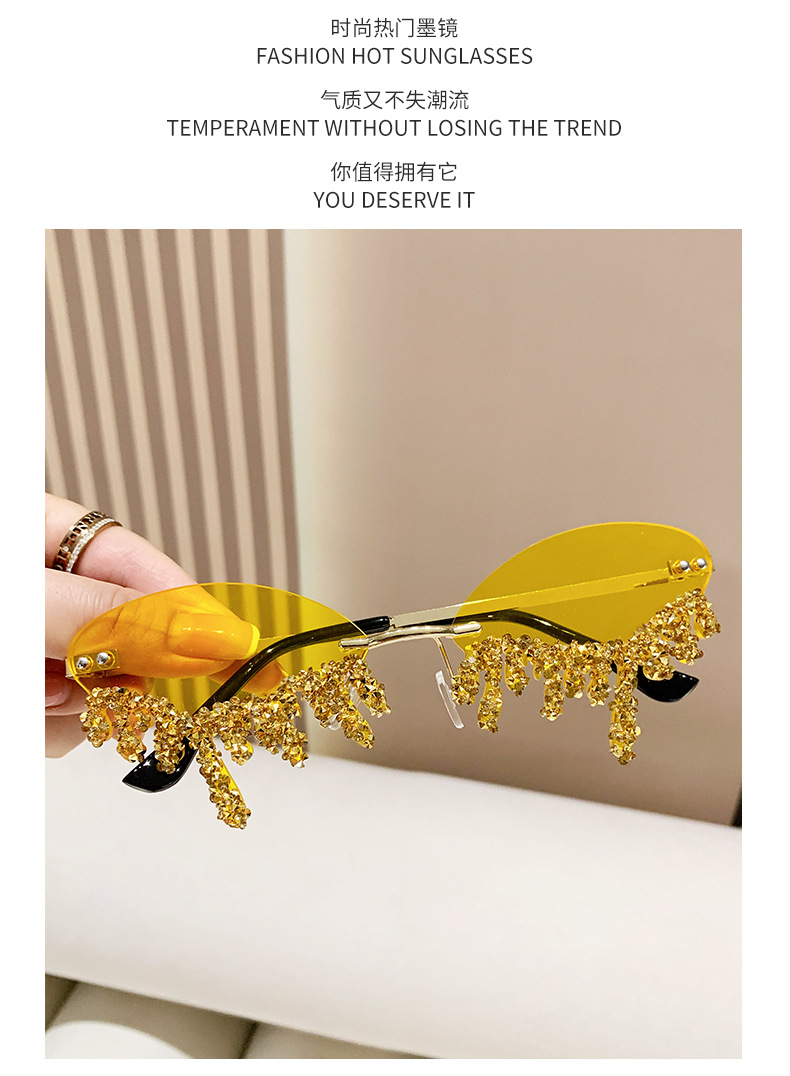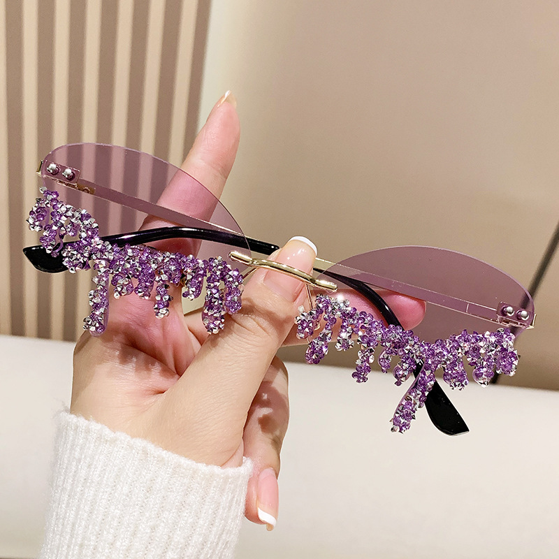 국경을 넘는 유럽과 미국의 새로운 천사 눈물 수제 다이아몬드가 박힌 선글라스 재미있는 사진 창의적인 프레임리스 엣지 컷 선글라스