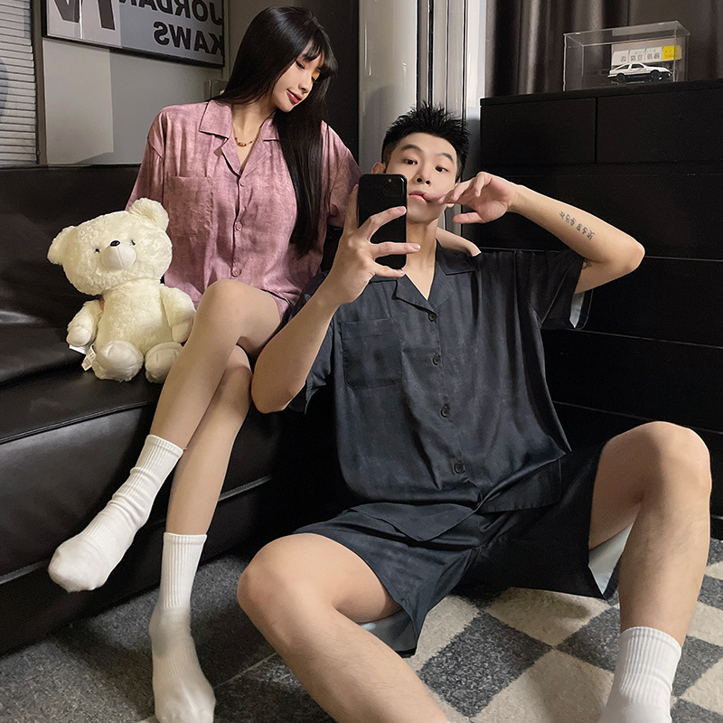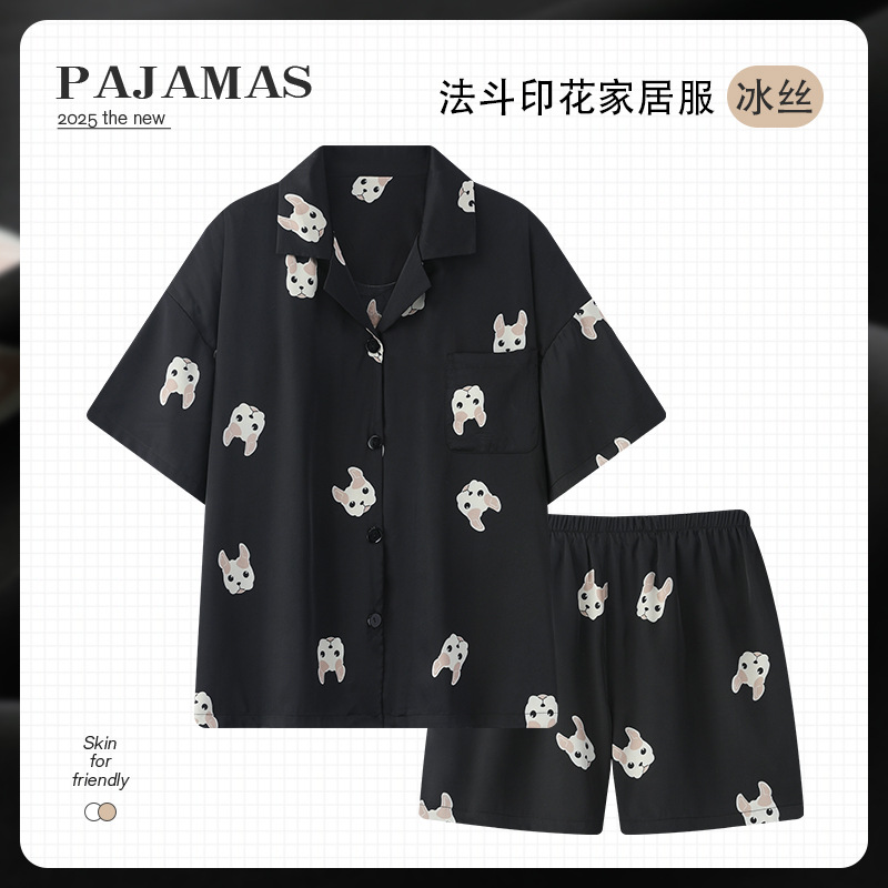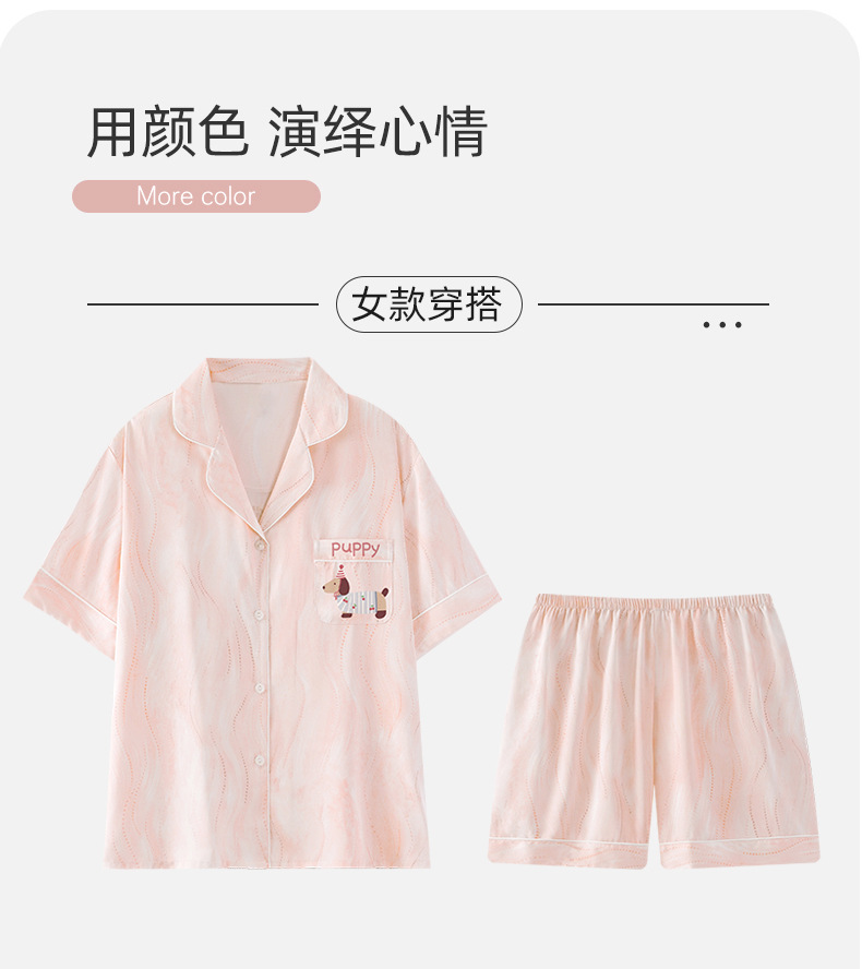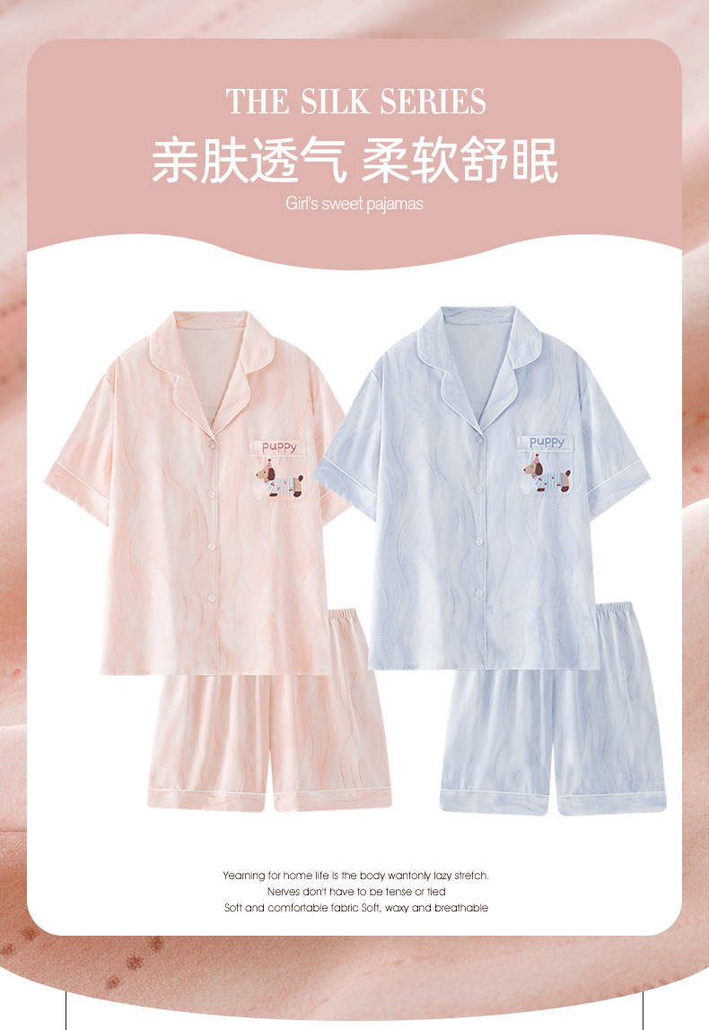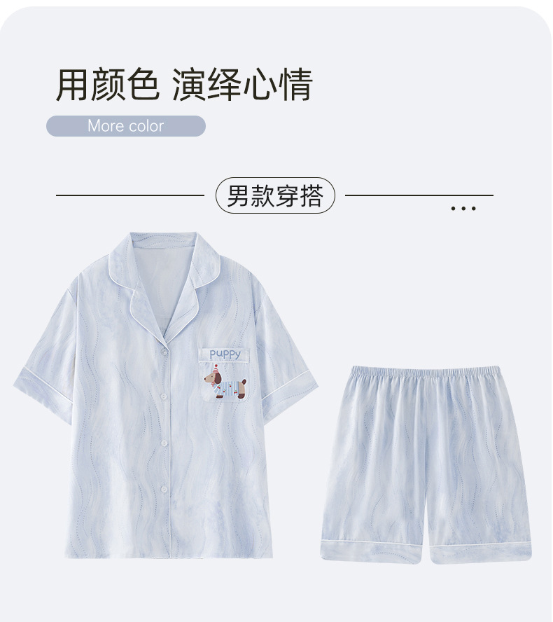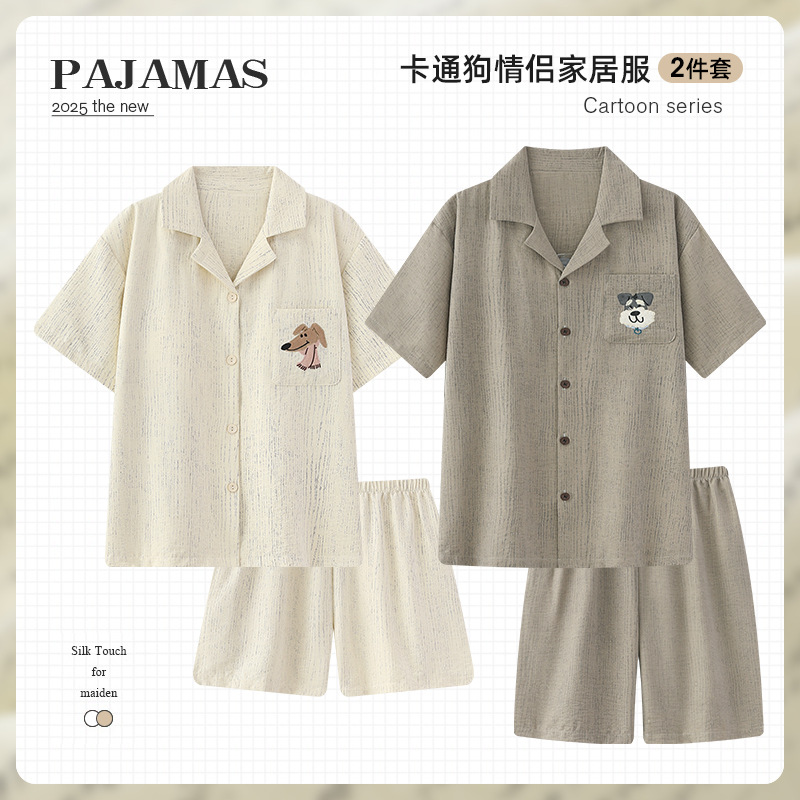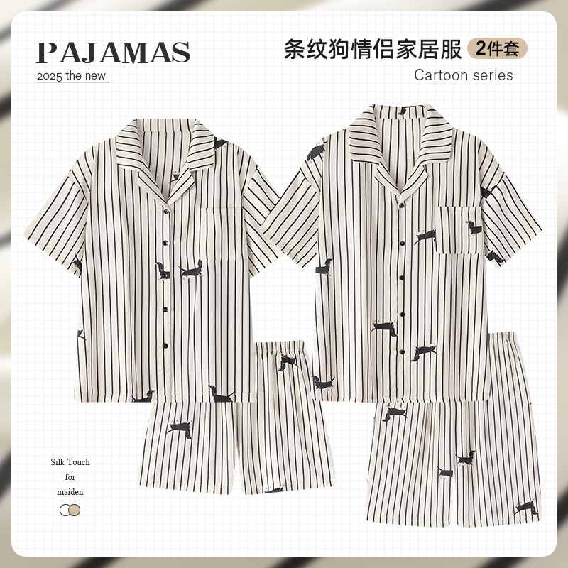 여성용 커플 잠옷, 여름용 얇은 반팔 얼음 실크 귀여운 닥스훈트 남아용 여름 홈웨어 세트스토어 가기