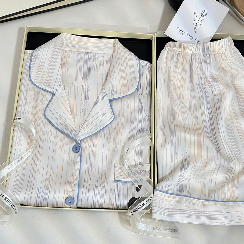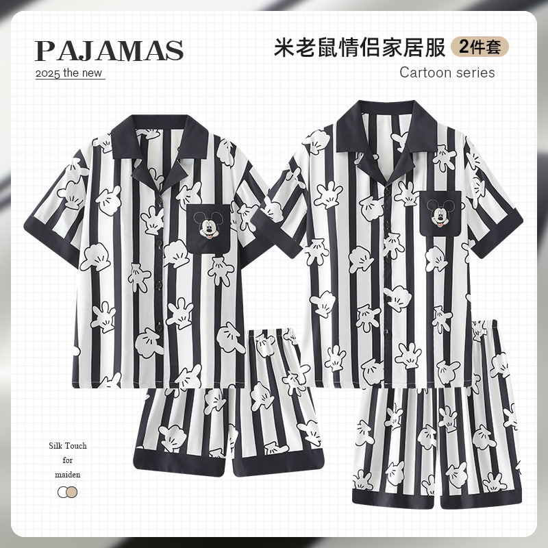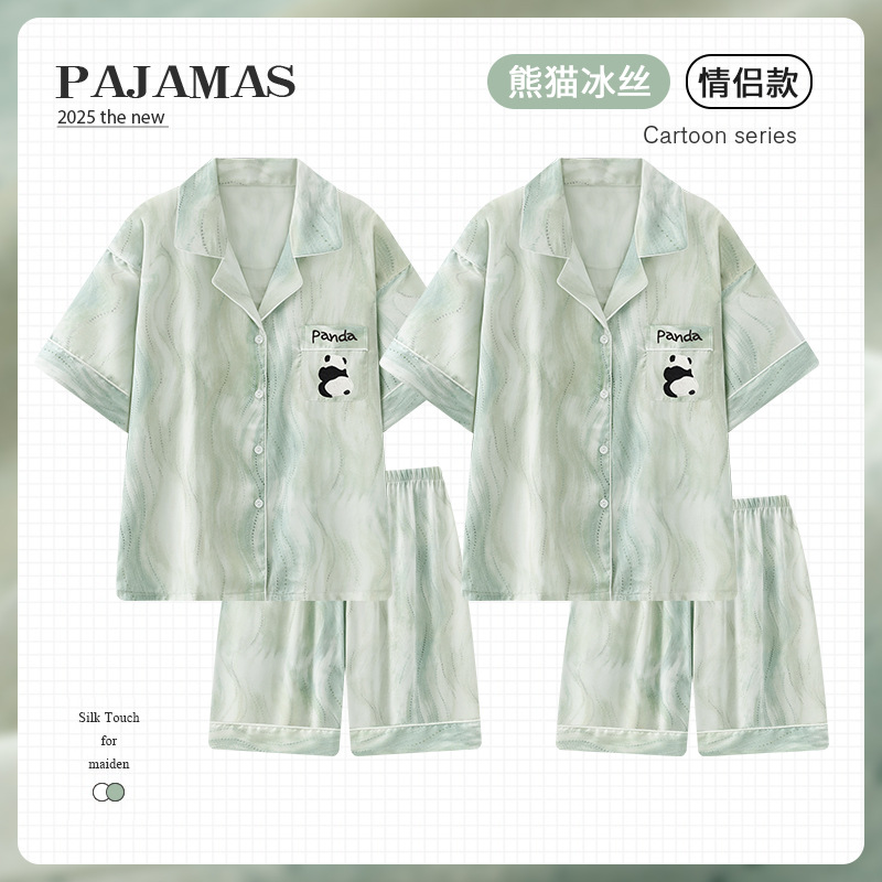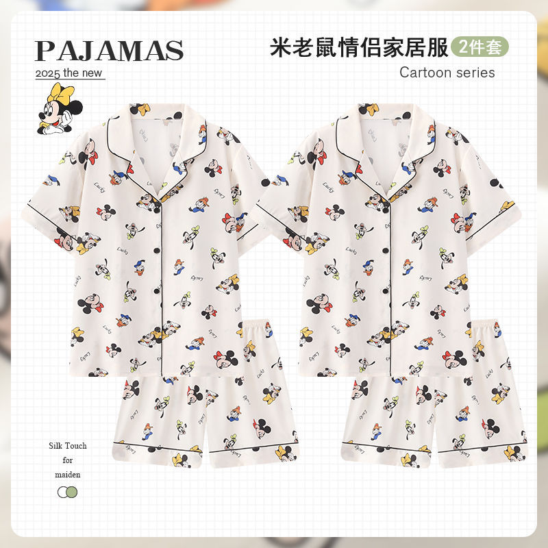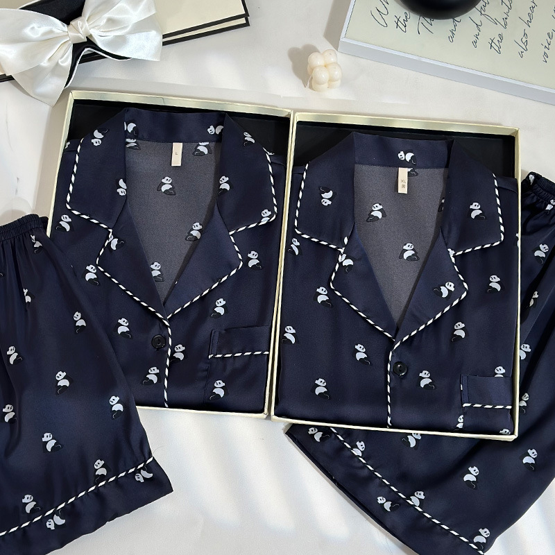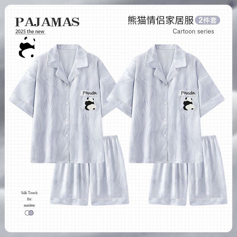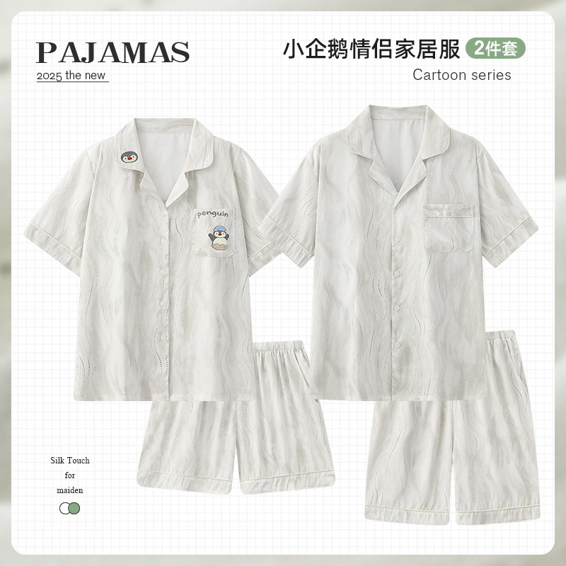 여성용 커플 잠옷, 여름용 얇은 반팔 얼음 실크 귀여운 닥스훈트 남아용 여름 홈웨어 세트스토어 가기