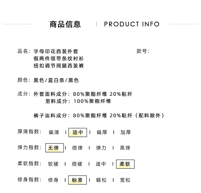 • 4종 세트(재킷+셔츠+바지+넥타이)