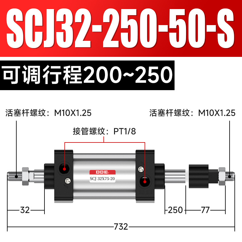 SCJ 실린더 스트로크 조정 가능한 대형 추력 소형 공압 32/40/50/63/80/100/125S 자기 포함