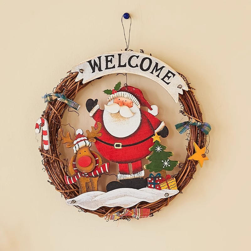 크리스마스 장식 창조적 인 등나무 링 벨 창 유리 문 벽걸이 장면 레이아웃 화환 노인 눈사람스토어 가기