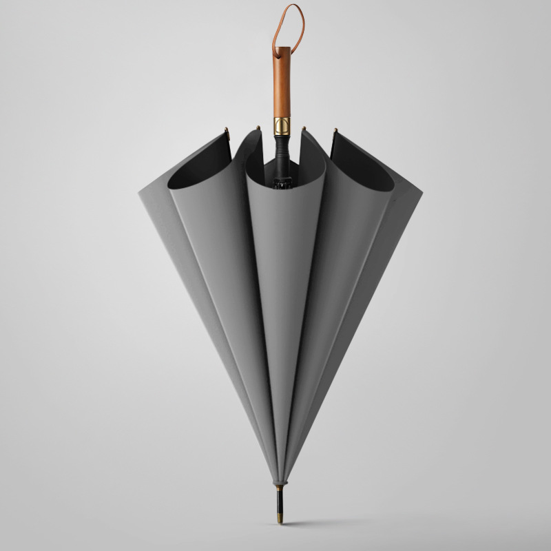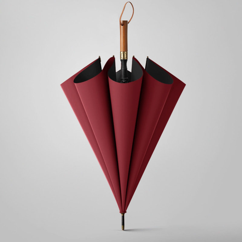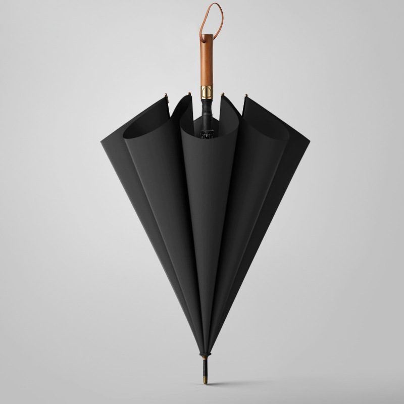 긴 손잡이 우산 단단한 나무 손잡이 비닐 태양 보호 자동 광고 우산 맞춤형 로고 레이저 조각 자동 우산