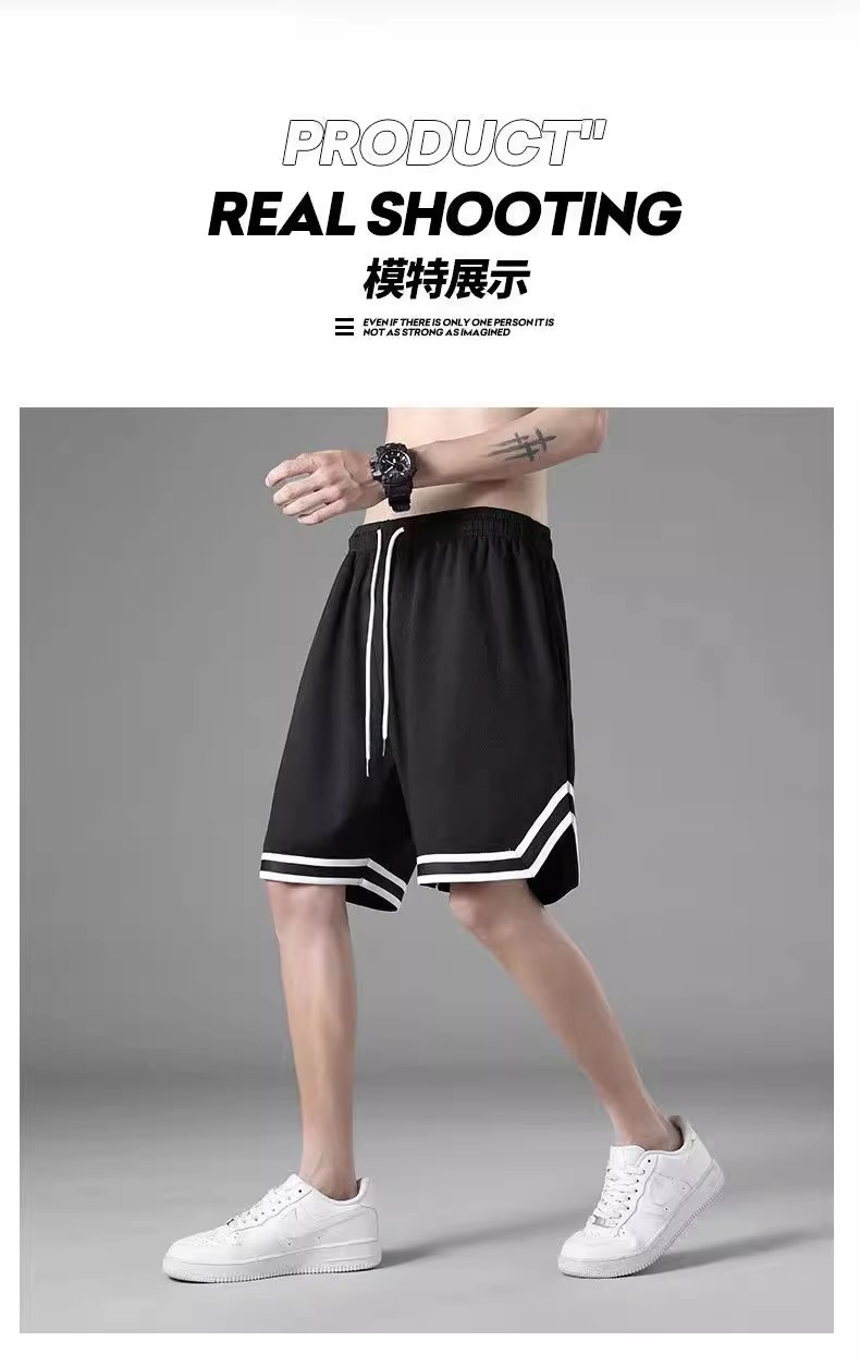 남성용 아이스 실크 메쉬 스포츠 반바지, 남성용 루즈하고 얇고 통기성이 뛰어나고 패셔너블한 5부 바지, 남성용 및 청소년용 비치 바지