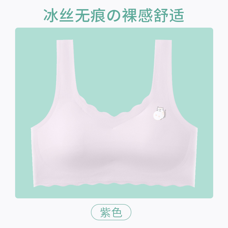 여아 발달기, 중학생, 여아 속옷, 여름 얇은 통기성 아름다운 등 브래지어를 위한 얼음 실크 무봉제 조끼 스타일