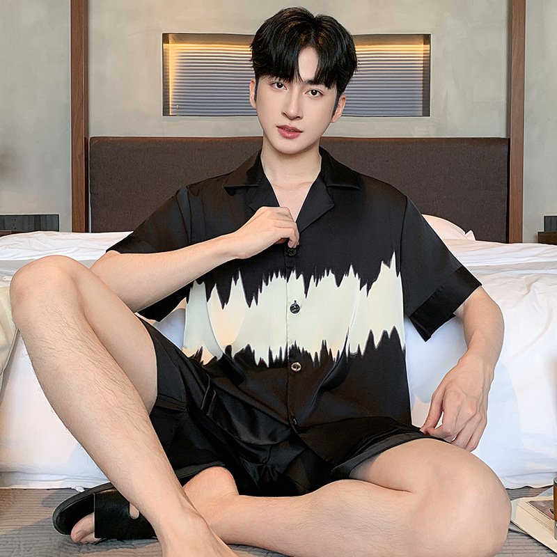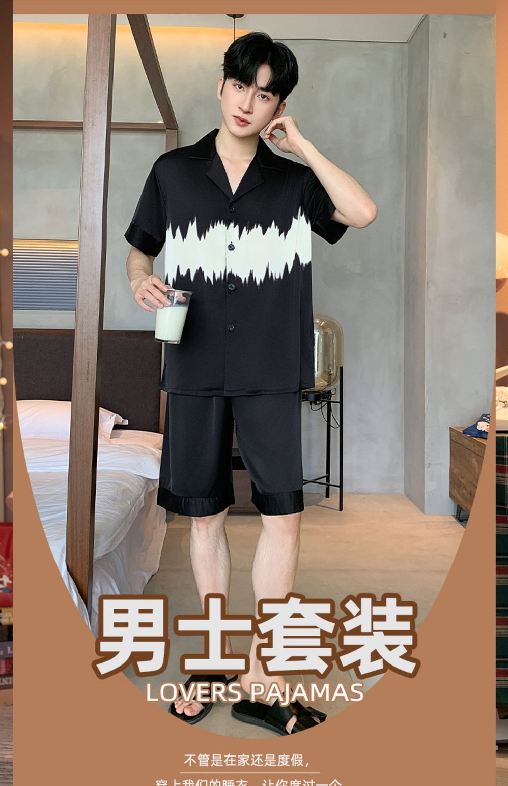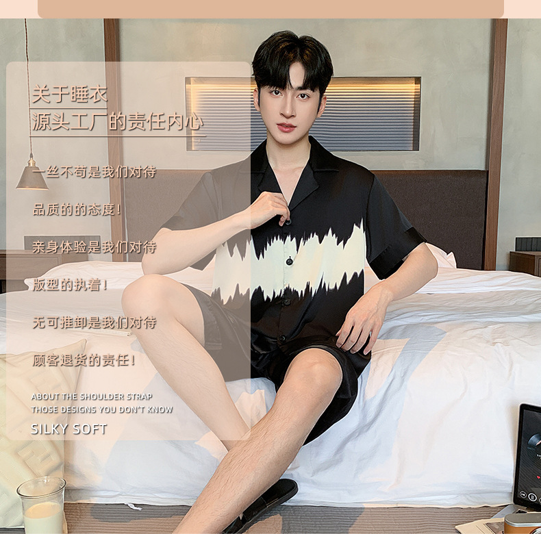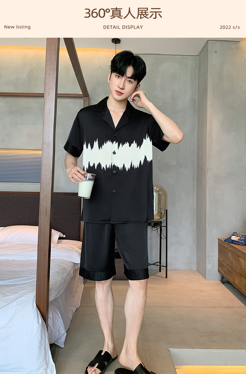 남성용 아이스 실크 잠옷 2025 새로운 여름 얇은 플러스 사이즈 플러스 사이즈 여름 반팔 반바지 정장 홈웨어스토어 가기