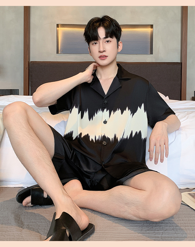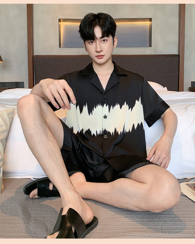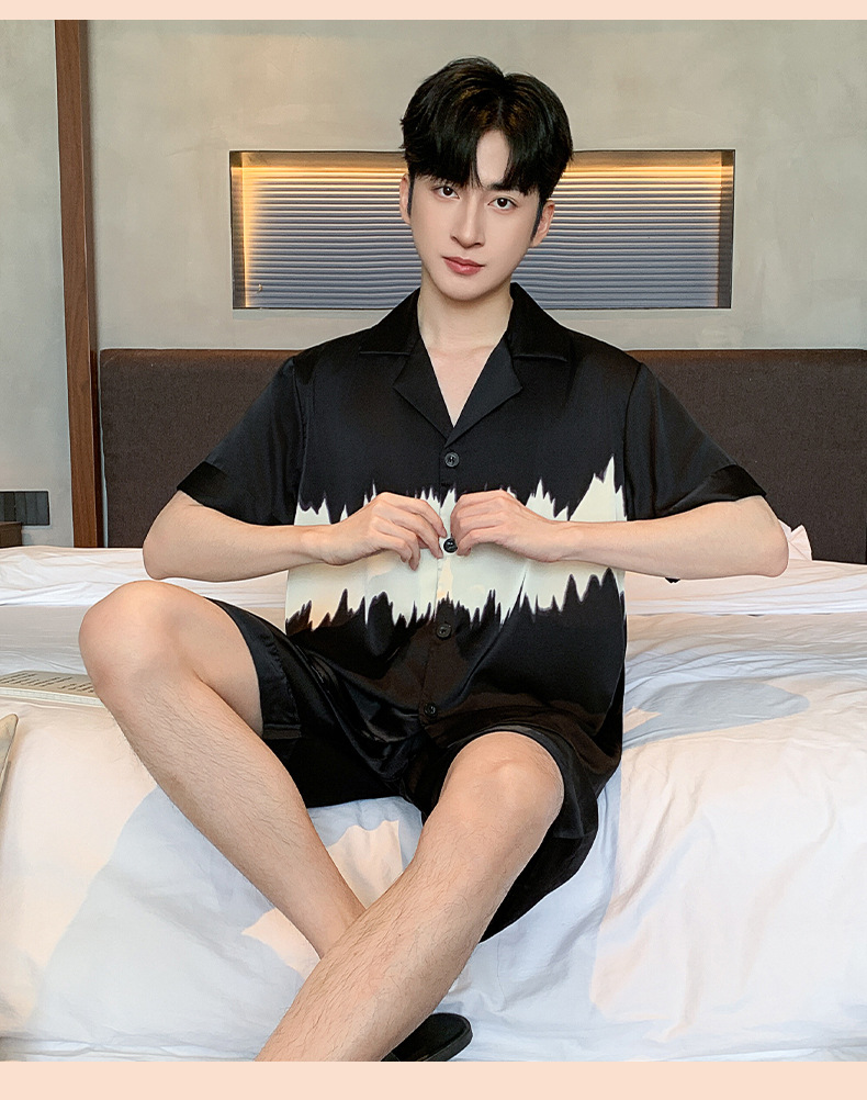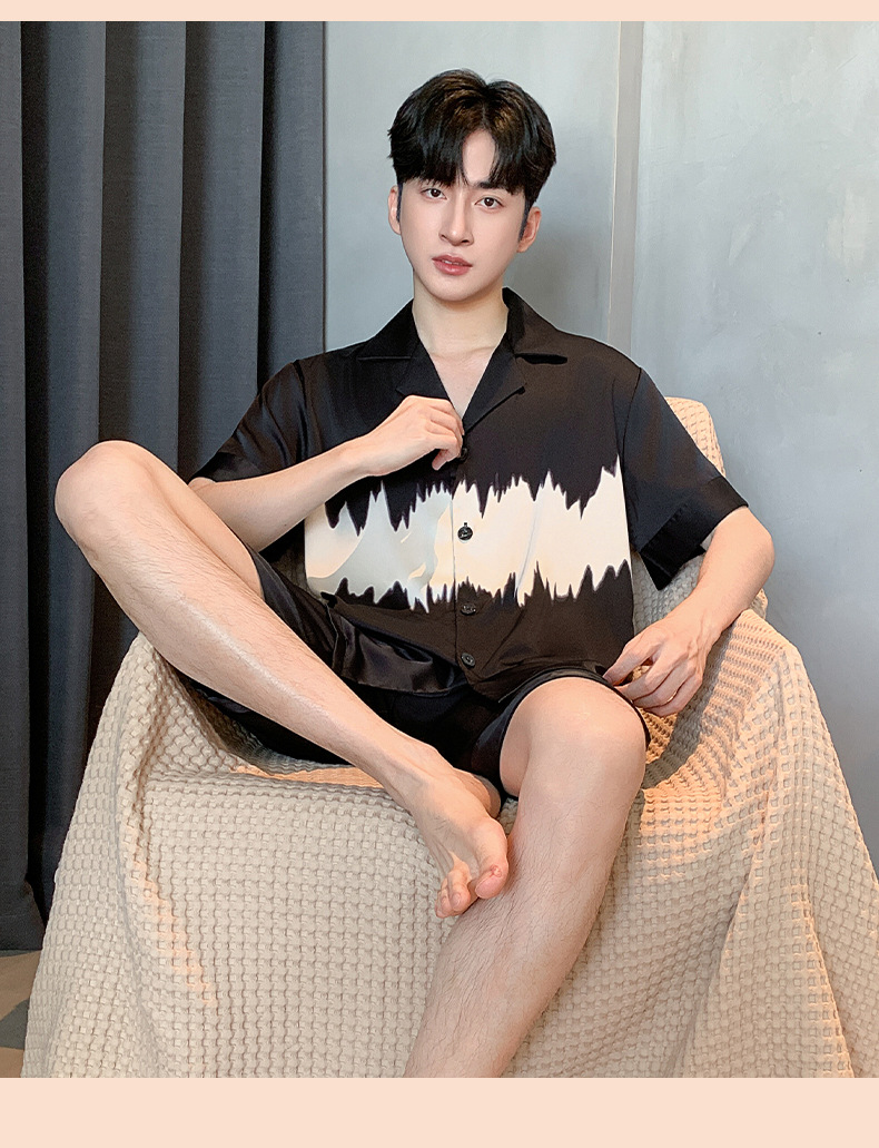 남성용 아이스 실크 잠옷 2025 새로운 여름 얇은 플러스 사이즈 플러스 사이즈 여름 반팔 반바지 정장 홈웨어스토어 가기