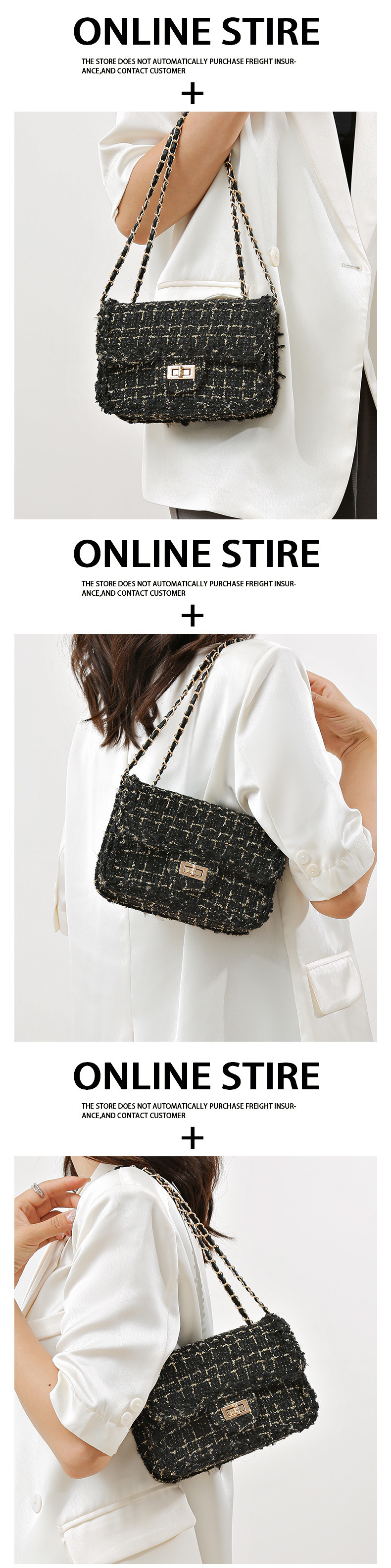 라이트 럭셔리 작은 향기로운 패션 모직 체인 가방 2024 새로운 작은 가방 여성 크로스 바디 숄더 백