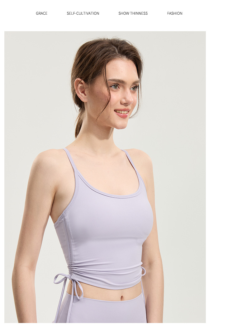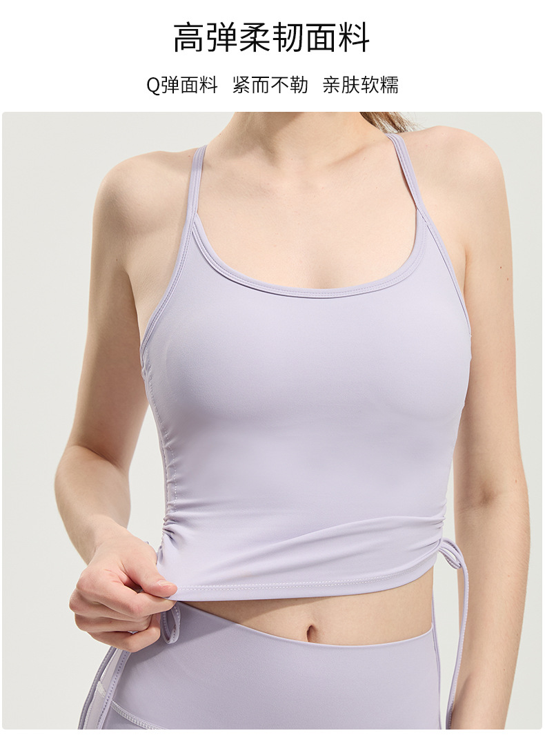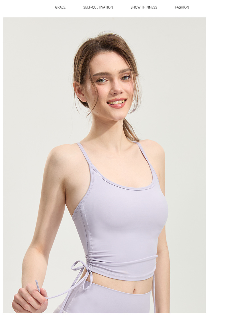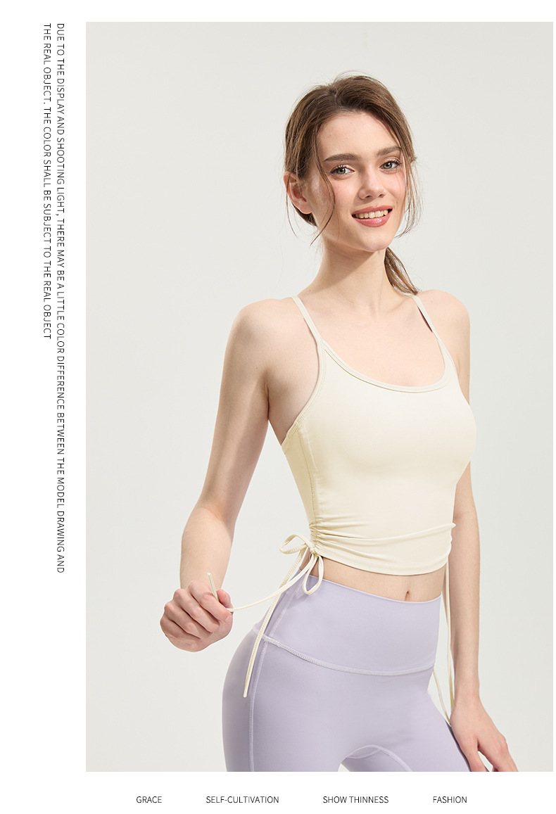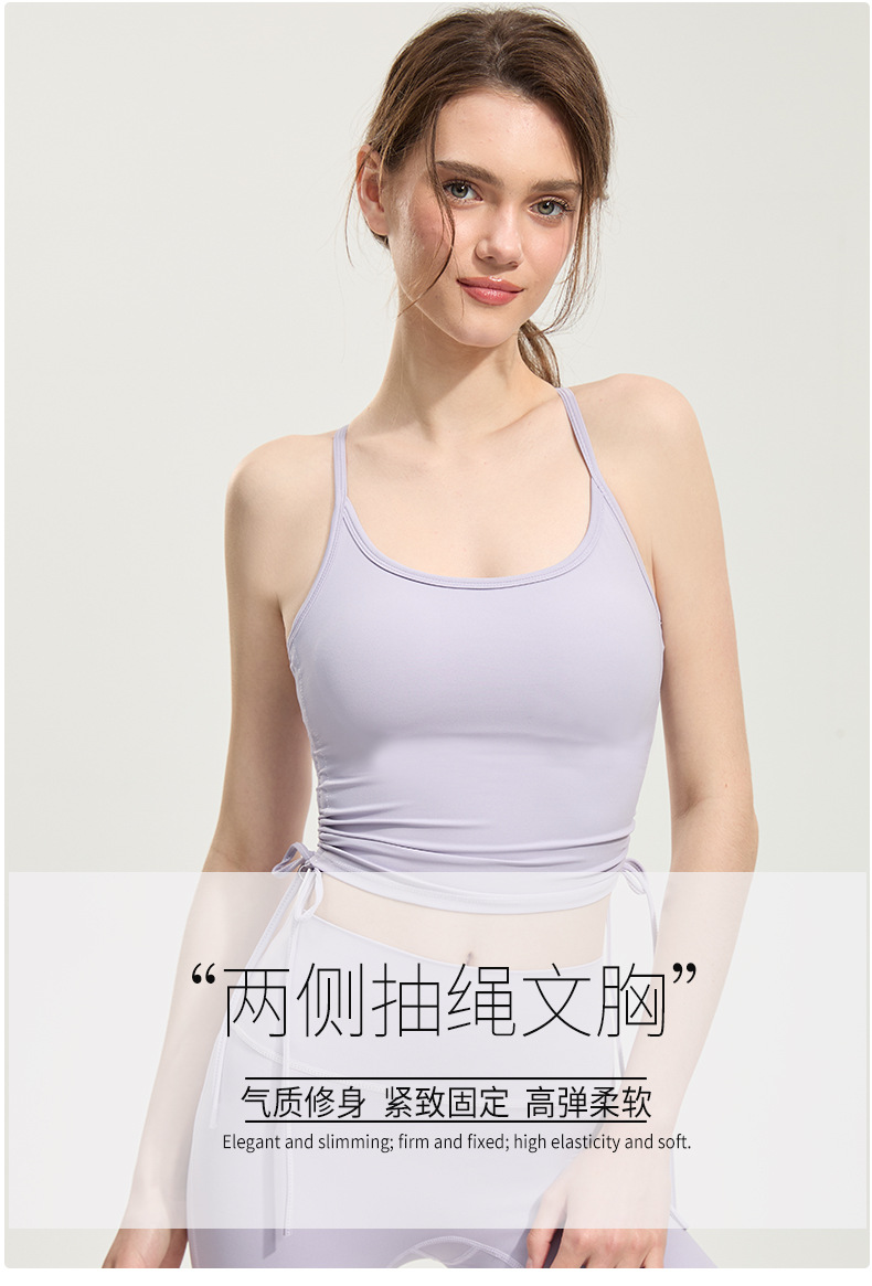 여름 신작 I자형 조끼, 사이드 드로스트링 스포츠 브라, 러닝 트레이닝 피트니스 의류, 충격 방지 아름다운 등 슬링