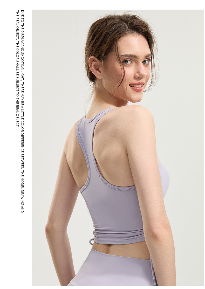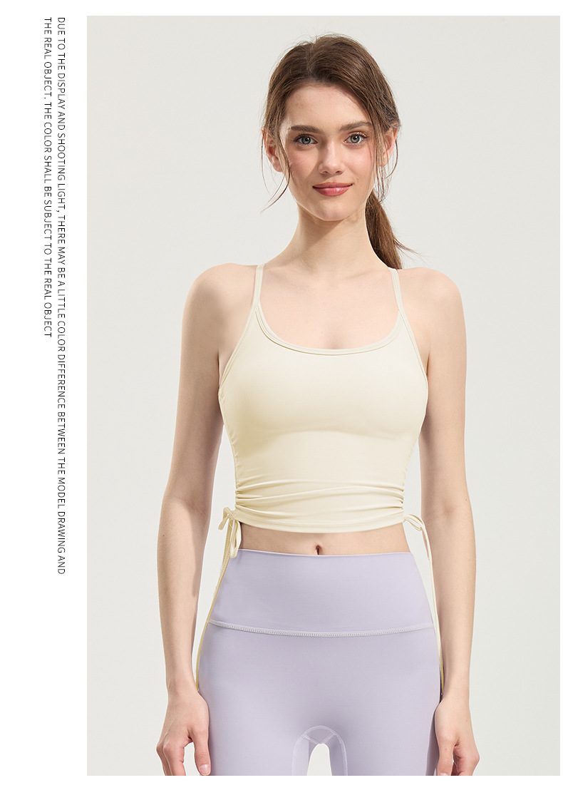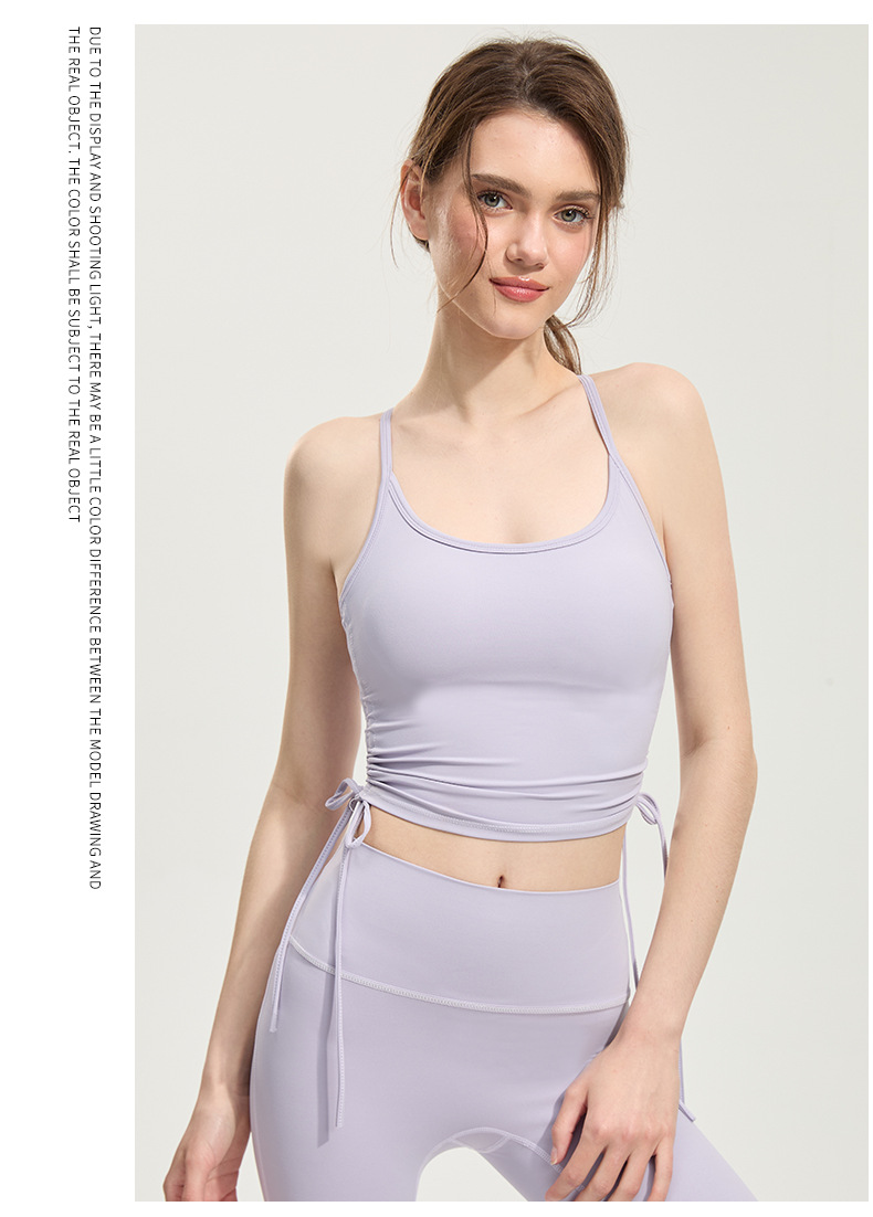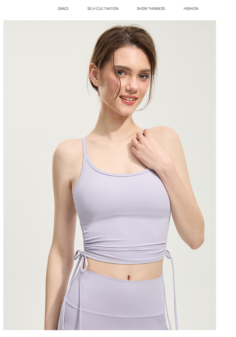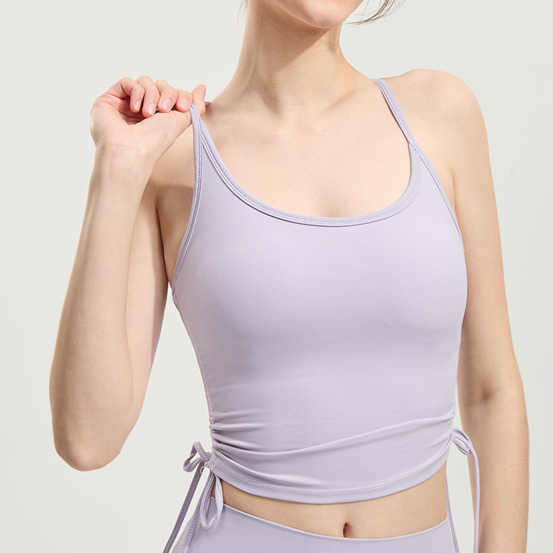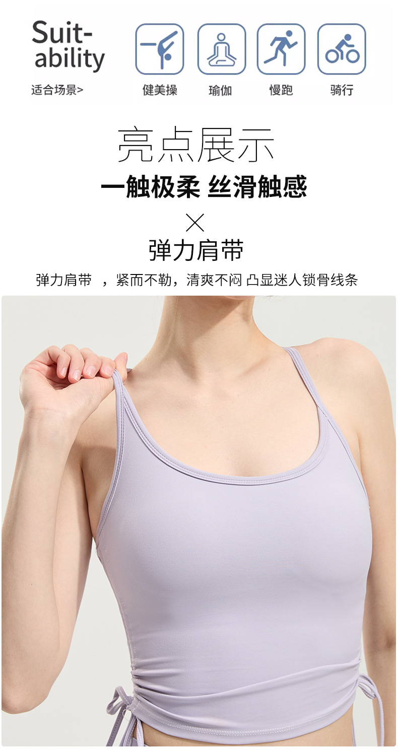 여름 신작 I자형 조끼, 사이드 드로스트링 스포츠 브라, 러닝 트레이닝 피트니스 의류, 충격 방지 아름다운 등 슬링